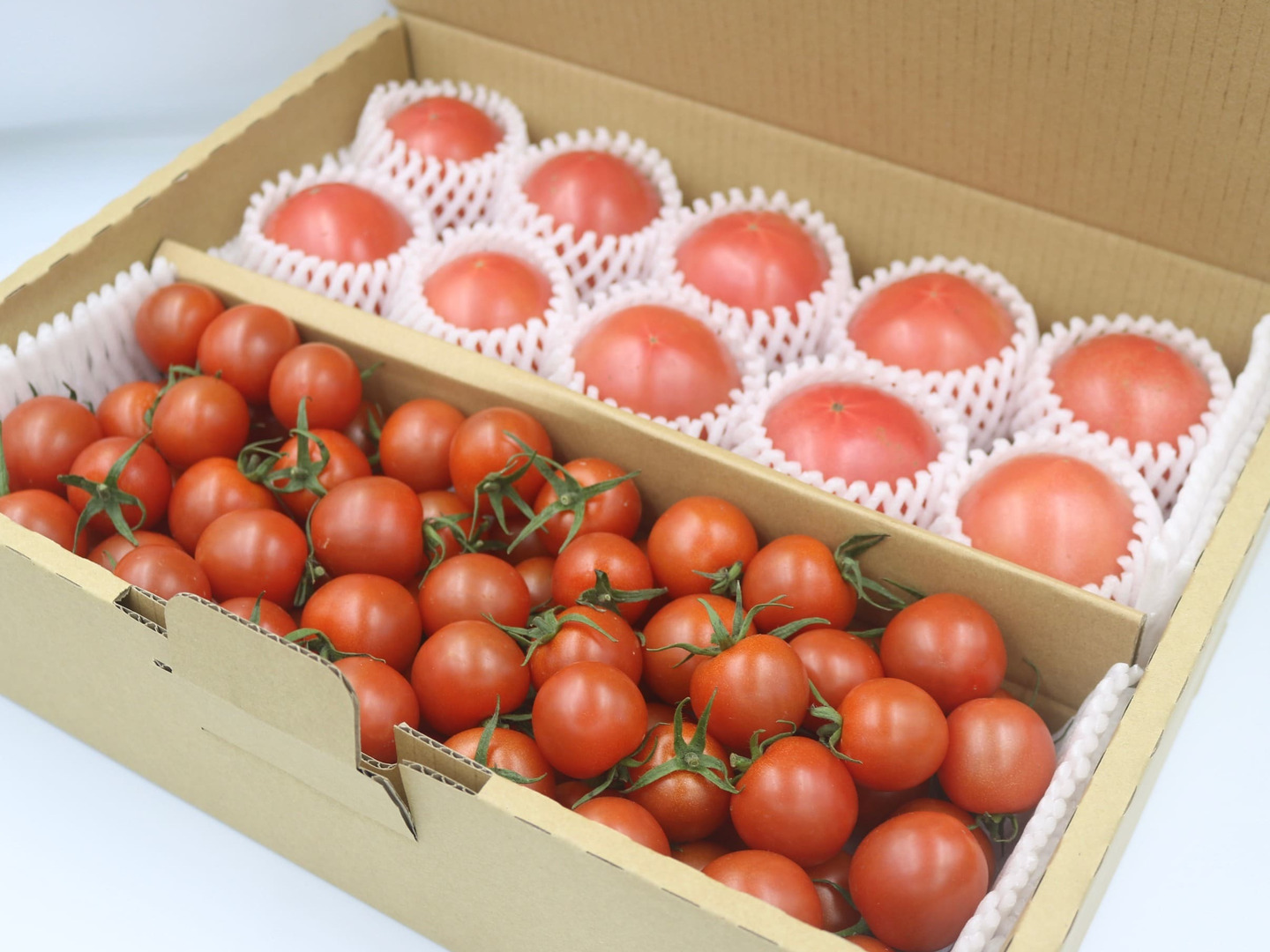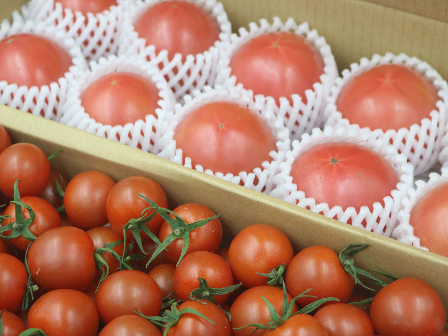 ミニトマト1.3kg、トマト1.3kgのセットです。