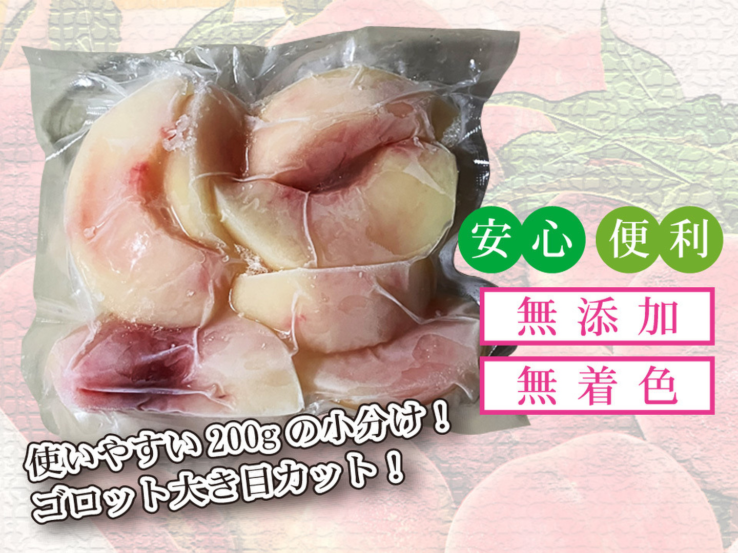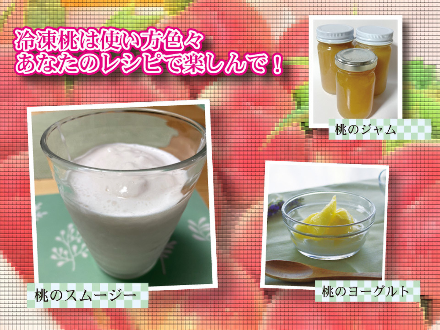桃をそのまま冷凍しています。冷凍すると糖度は感じにくくなりますので味の調整は好みで行ってください。