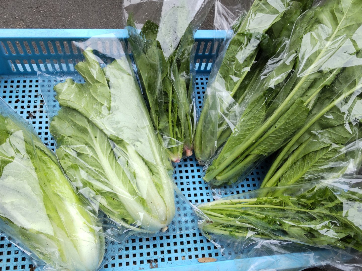 小松菜:大きく茎までみずみずしいです。お吸い物にすると、複雑で優雅な味わいが楽しめます。
