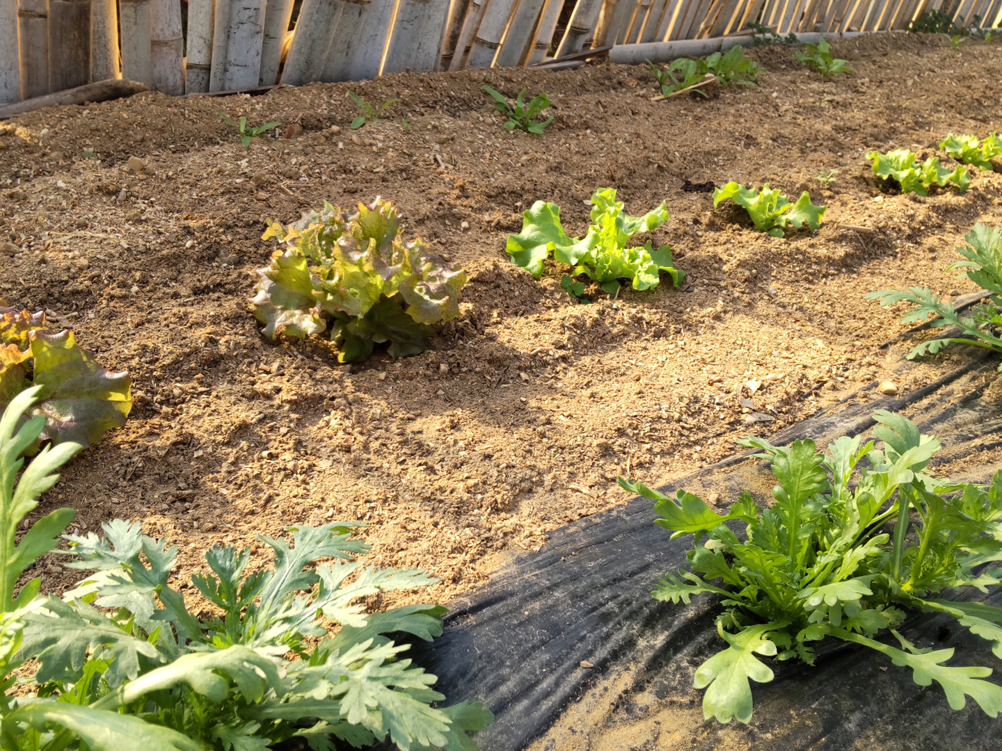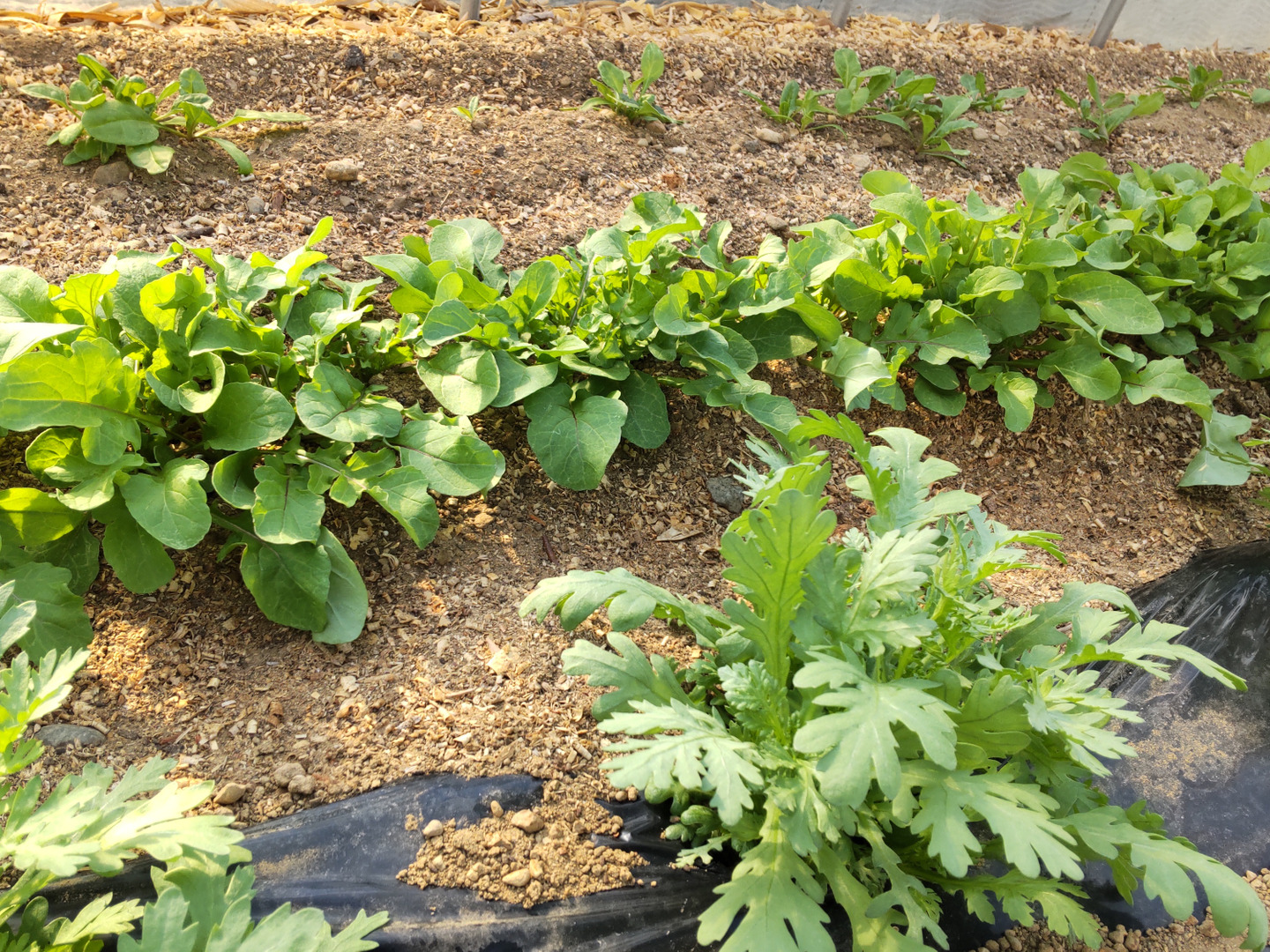 春菊:柔らかい新芽の部分を収穫しました。生でも食べられます。「春菊はあの苦味がどうも・・」という方はぜひお召し上がりください。今までのイメージが変わります。