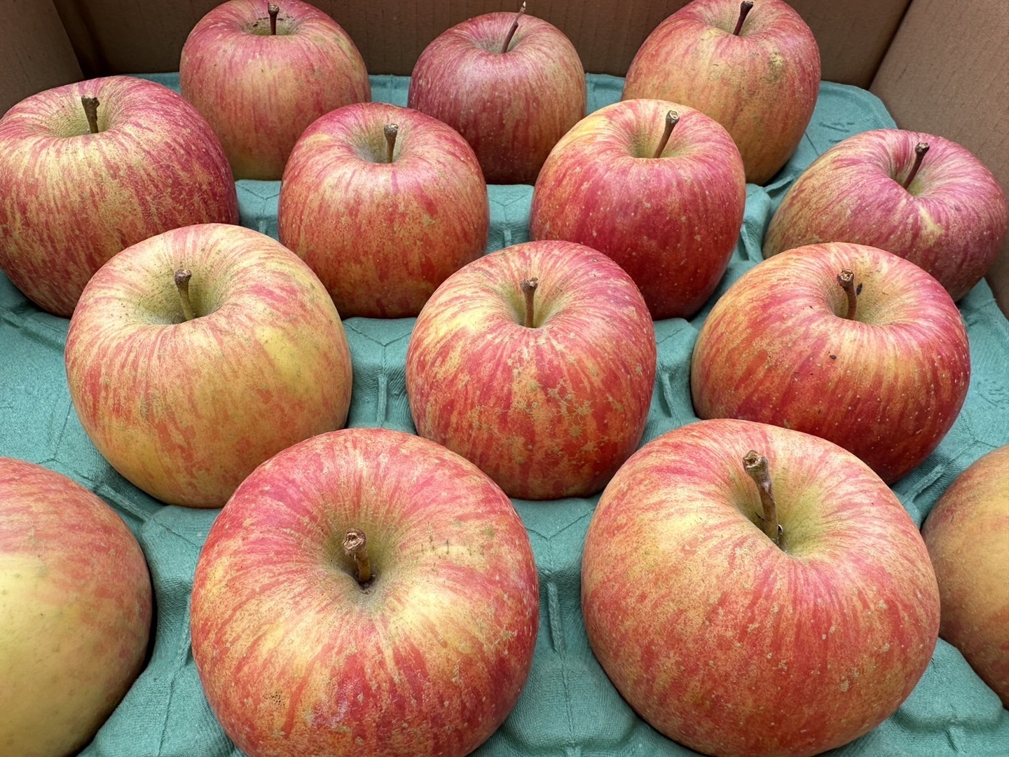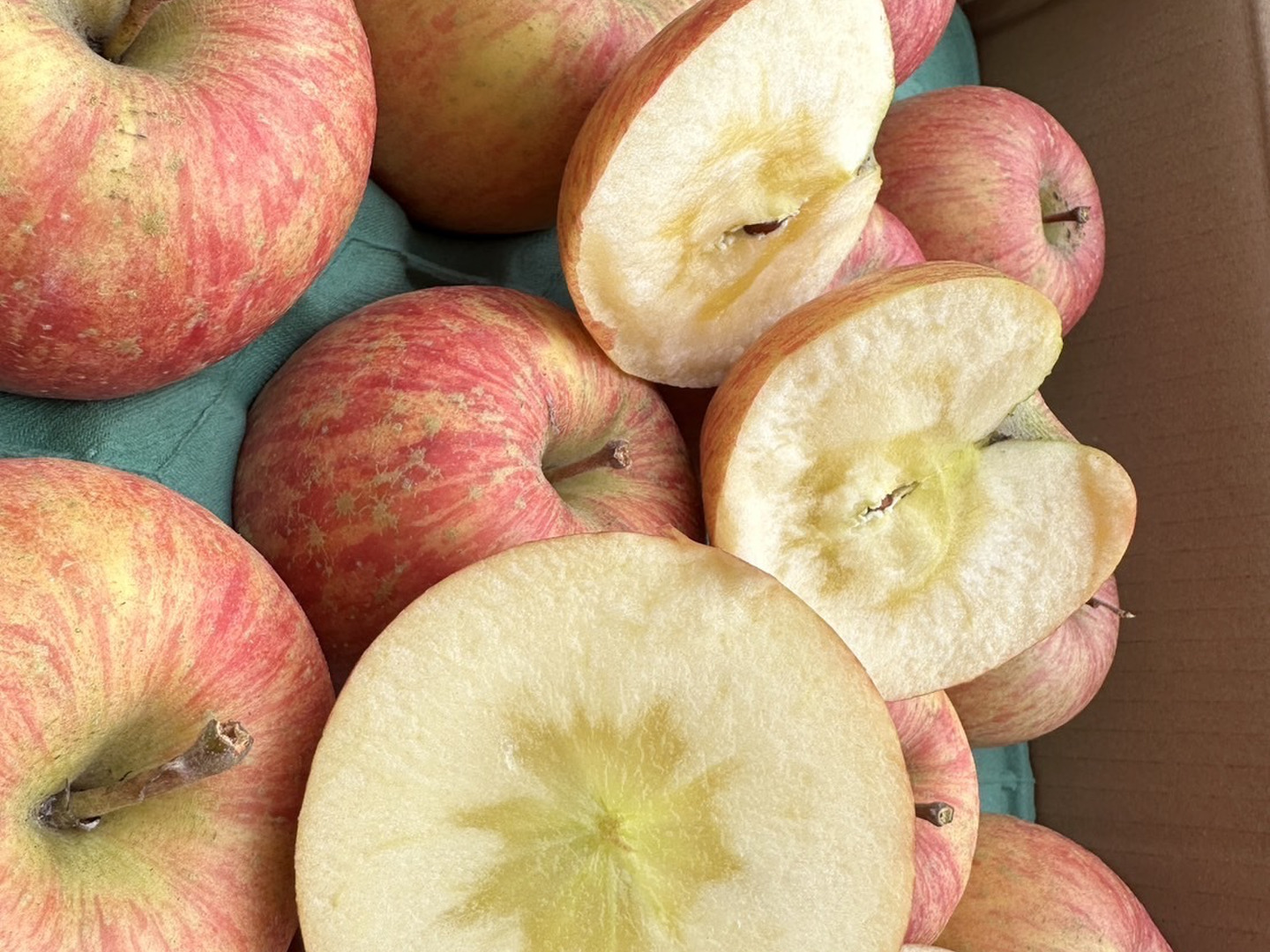 栄養をギリギリまで葉っぱから吸い上げ、蓄えに蓄え過ぎた、わがままりんごがそのまんまりんご+で栽培した、「葉取らずサンフジ」です🍎