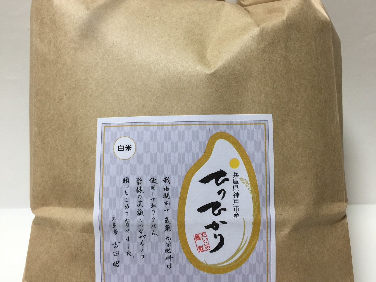 *保湿性が高く、お米の品質を保ちやすい、裏面ラミネート加工された、高品質の紙の袋でお届けします。