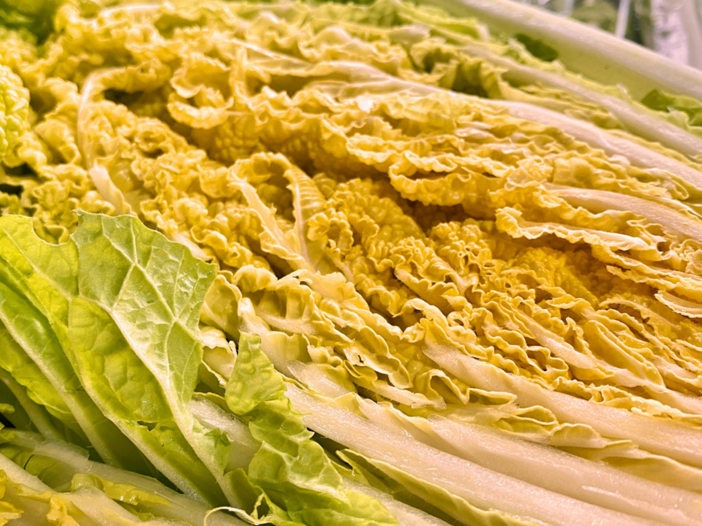 外見は通常のハクサイと変わりませんが、カロテンも含むため結球内部がオレンジ色なのが特長です