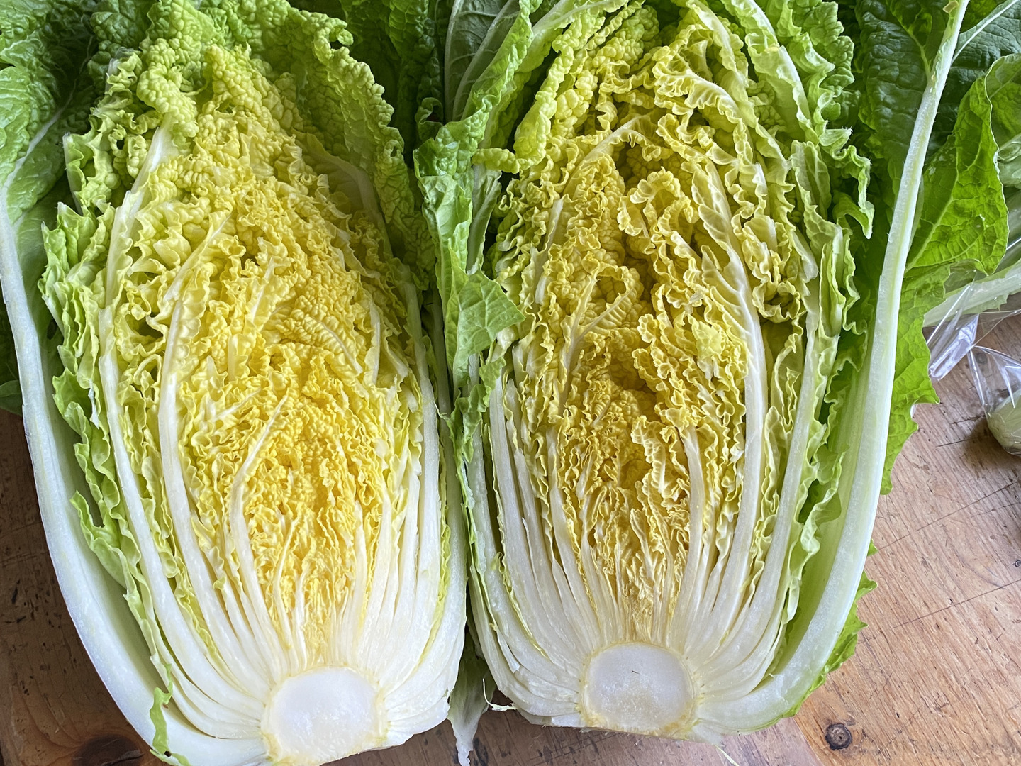 肥料も水も与えずに育てた、1個1kg前後の白菜