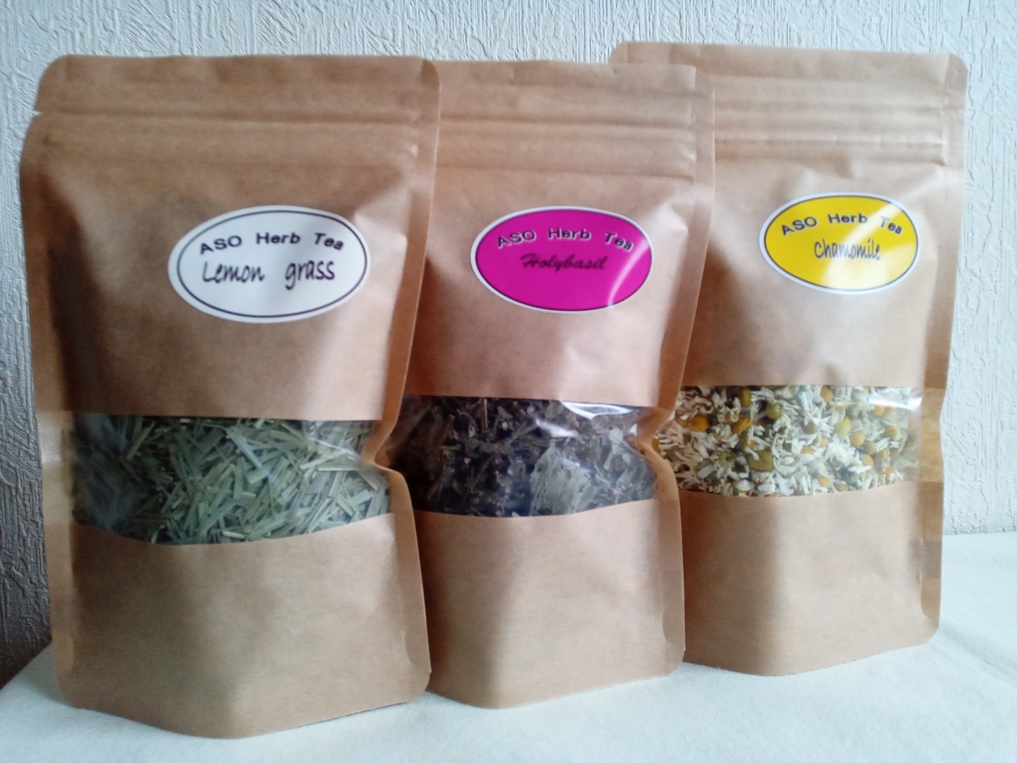 レモングラス1袋(30g)、ホーリーバジル1袋(20g)、カモミール1袋(20g)