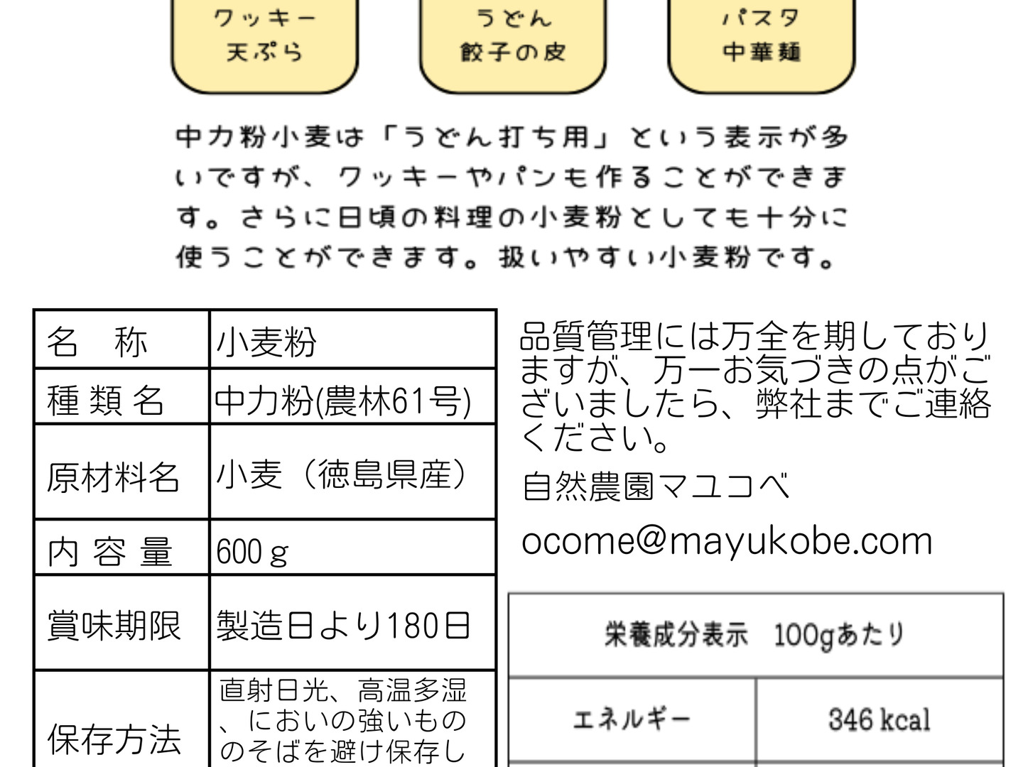 自然農園マユコべでは、使いやすく白い細かめに製粉した小麦粉にしました。