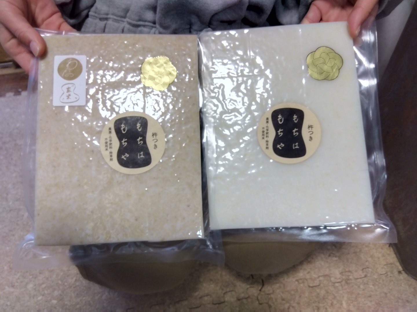- 杵つきならではのコシのある白餅と玄米餅