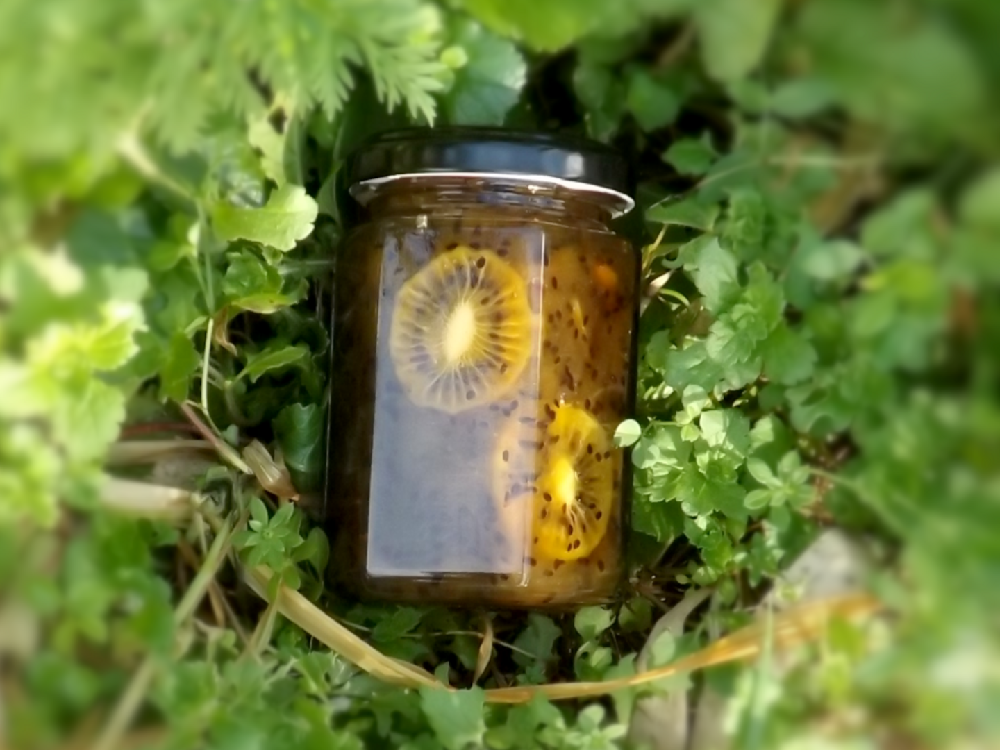キウイの輪切りを瓶に飾り、優雅な見た目に仕上げました。