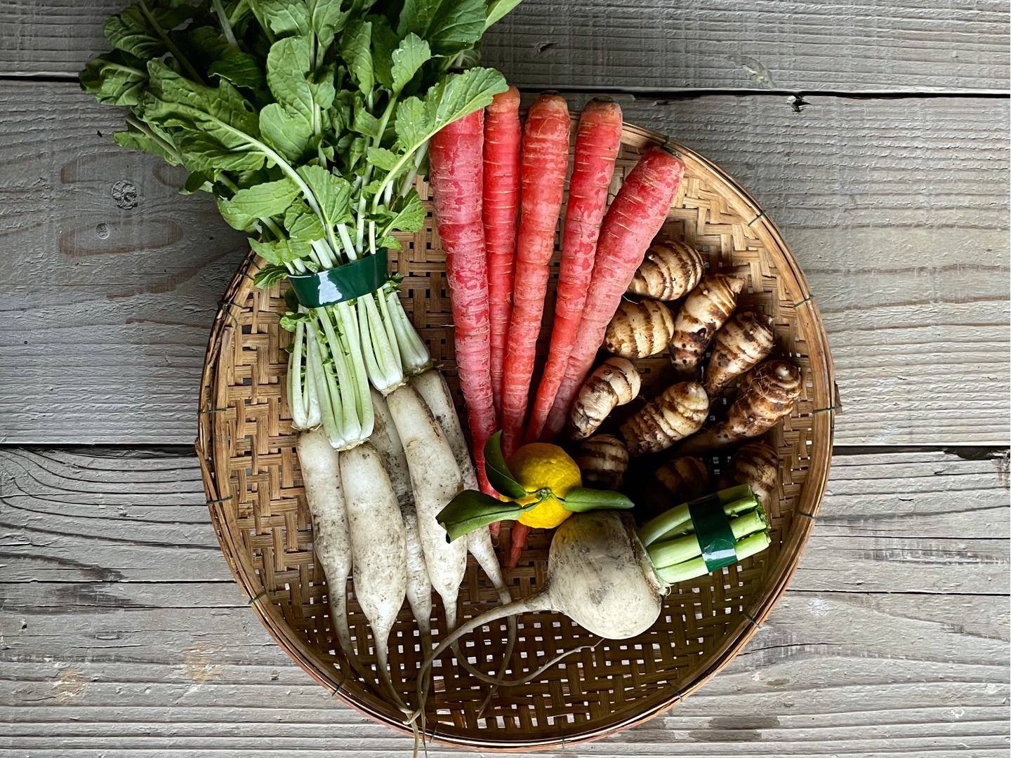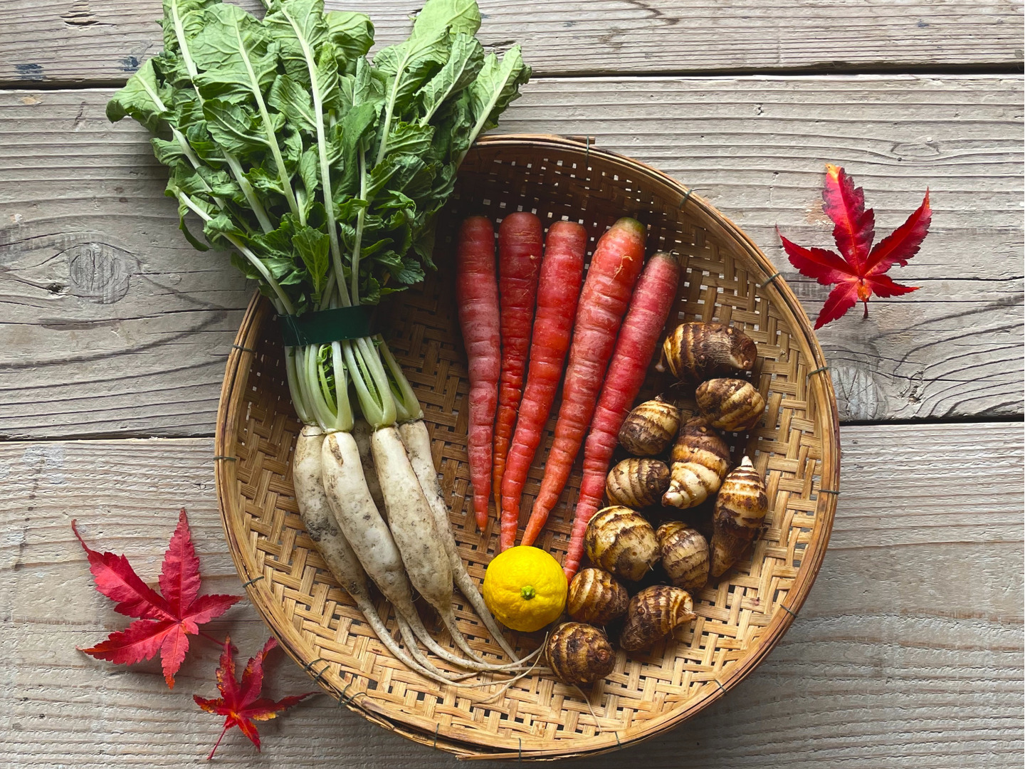 - ここでしか手に入らないつくだ農園の「有機野菜雑煮セット」