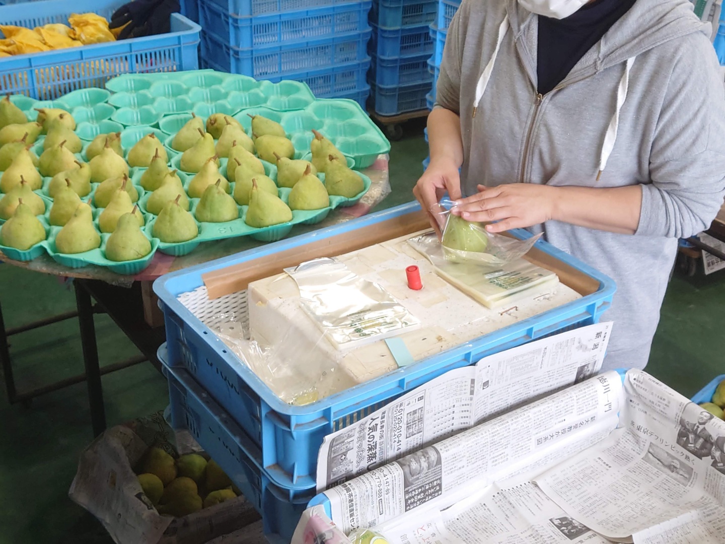 西洋梨は収穫した時点ではまだ硬く、香りも少ない状態ですが、収穫後に追熟期間を経て美味しい果実になります。