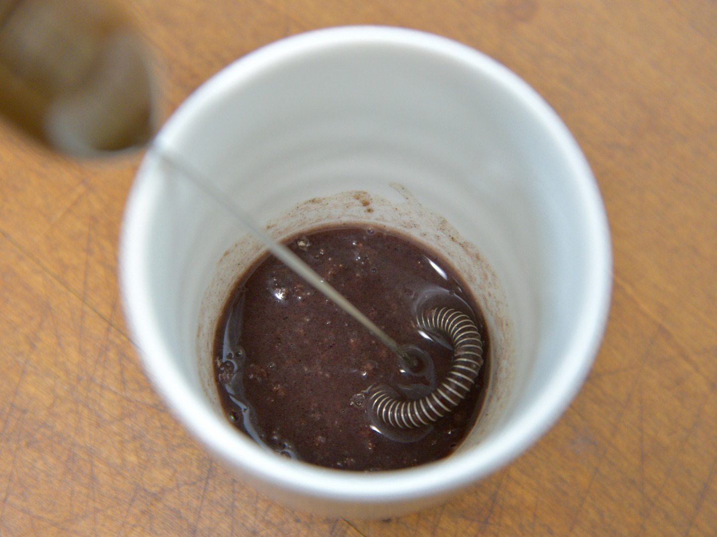 小さじ一杯ほど黒米玄米コーヒーを、最初は少量のお湯で、ダマが無くなるように混ぜ(小さいハンディミキサーなどを使うと綺麗に混ざります。完全には溶けません。)、その後さらに150ccほどのお湯か水(氷)を入れ、お飲みください。