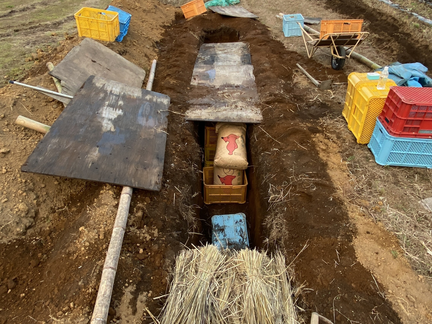 また、保管熟成に関しては今どきには、珍しく芋穴を掘り、土中にて、保管熟成しています。