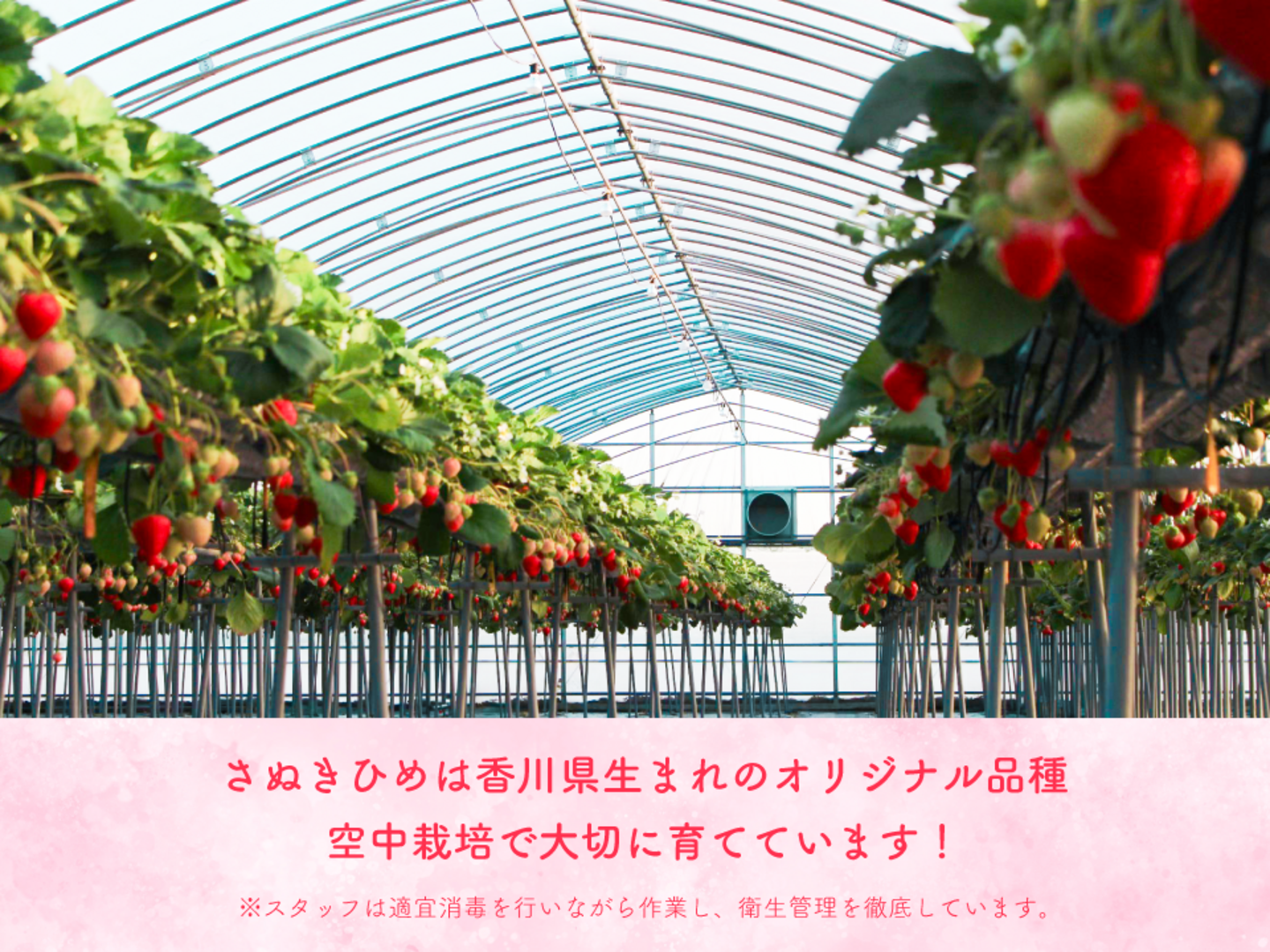 大粒いちごをパッケージング。食べ応えがあり、さぬきひめ独特の風味と爽やかな甘みを堪能できます。