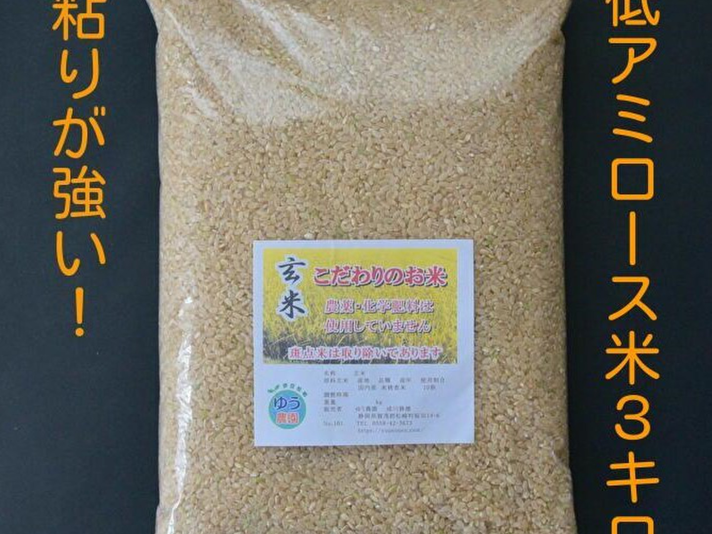 静岡県伊豆 松崎町産 「低アミロース米 ミルキープリンセス」玄米3kg