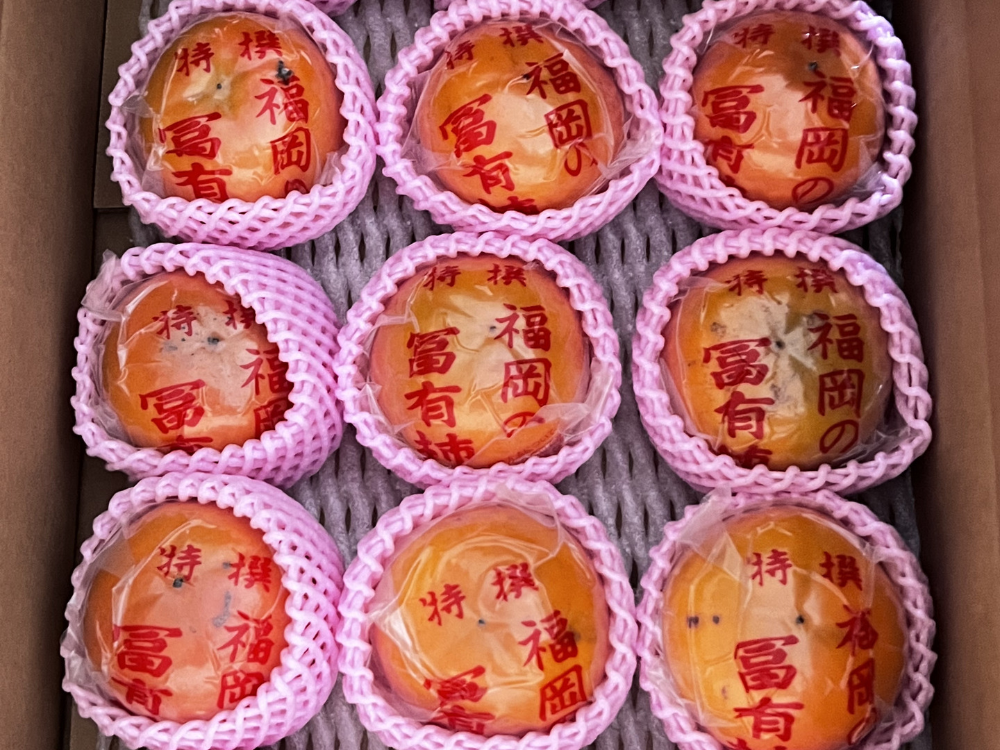 富有柿は、シャキッとした歯ごたえと、とろりとしたコクのある甘みが特徴です。