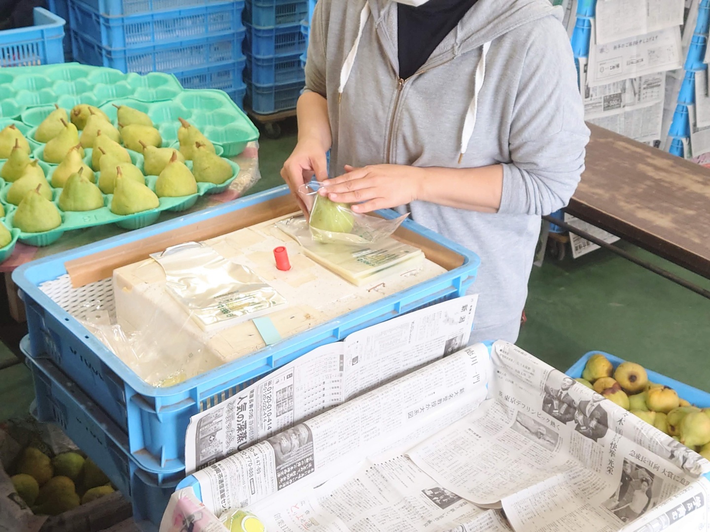 西洋梨は収穫した時点ではまだ硬く、香りも少ない状態ですが、収穫後に追熟期間を経て美味しい果実になります。