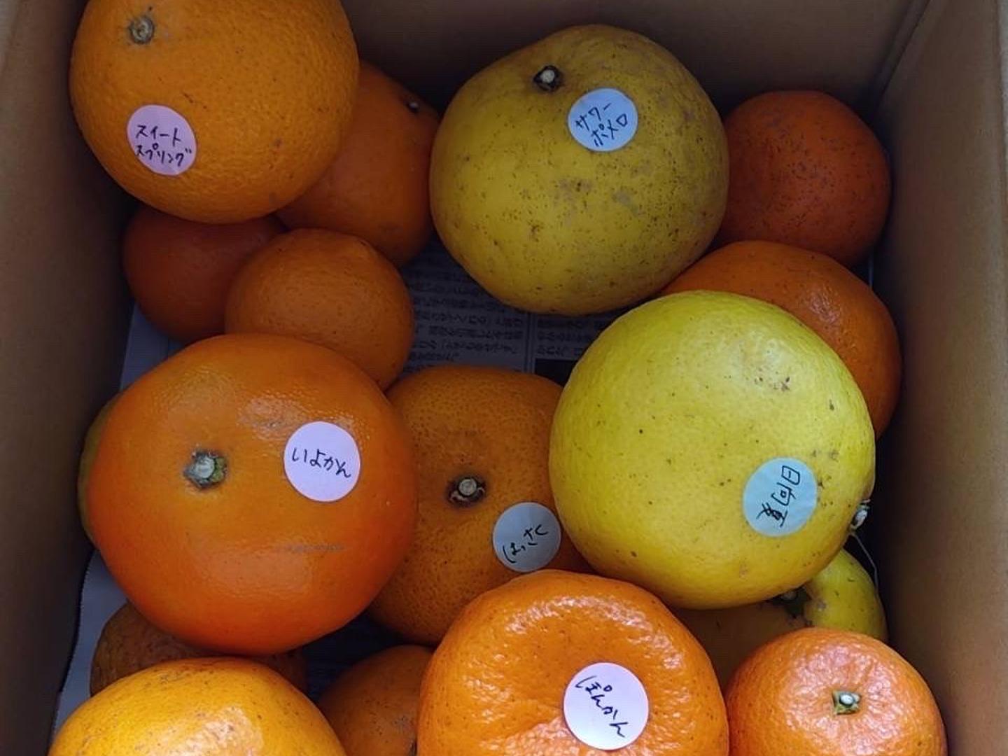 はるか、ぽんかん、伊予柑、スイートスプリング、清見オレンジの中から6種類になります。