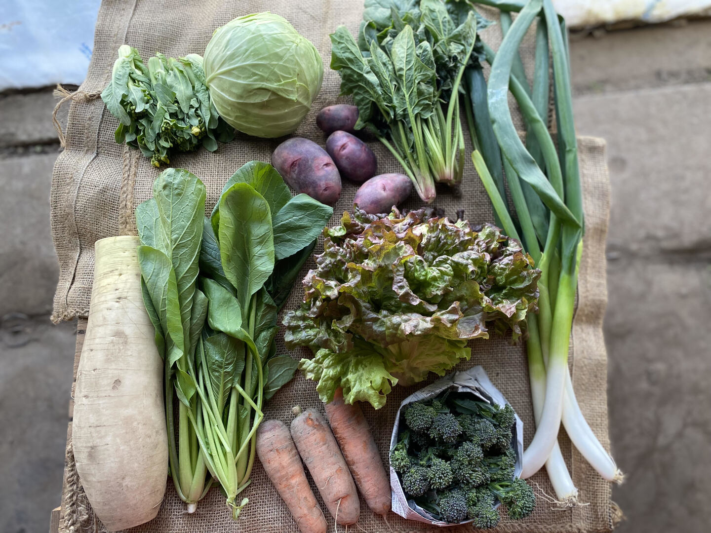 白菜、ニンジン、かぶ、聖護院大根、大根、ネギ、キャベツ、ほうれん草、じゃが芋、小松菜、ブロッコリーetc