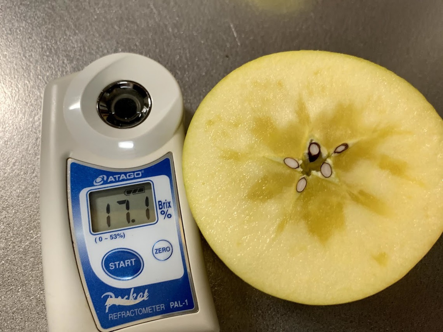 ”蜜入り”りんごとなりやすい品種ですが、全てに蜜が入っている訳ではありません。自然のものなので、ごく稀に蜜入りでないりんごも、入ることがあります。