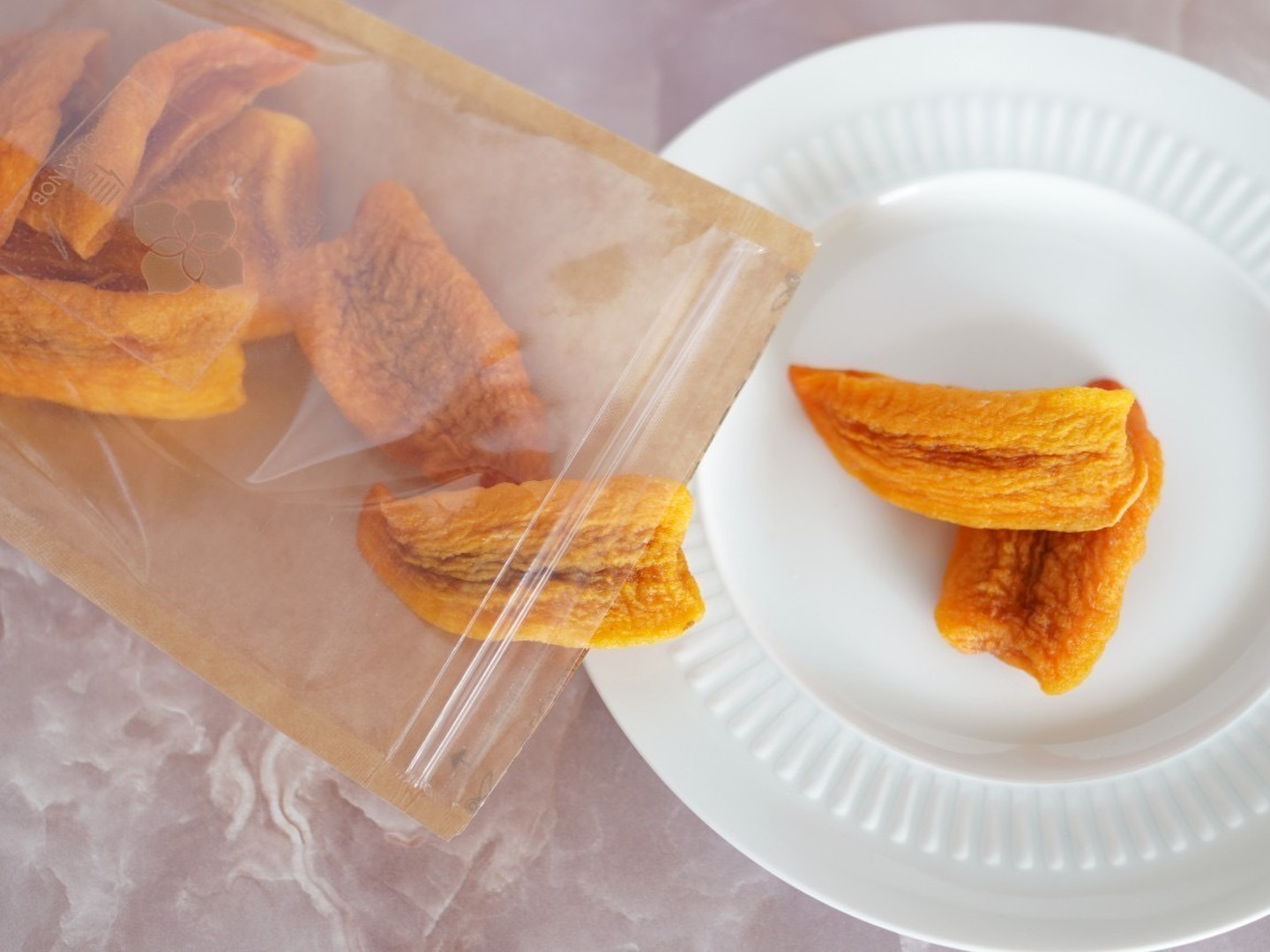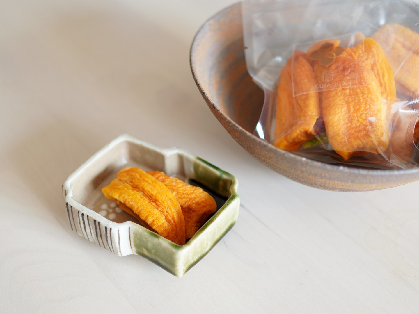南砺市原産の三社柿を遠赤外線乾燥でじっくりと仕上げたドライフルーツの味は自然の甘みが濃く深く広がります。
