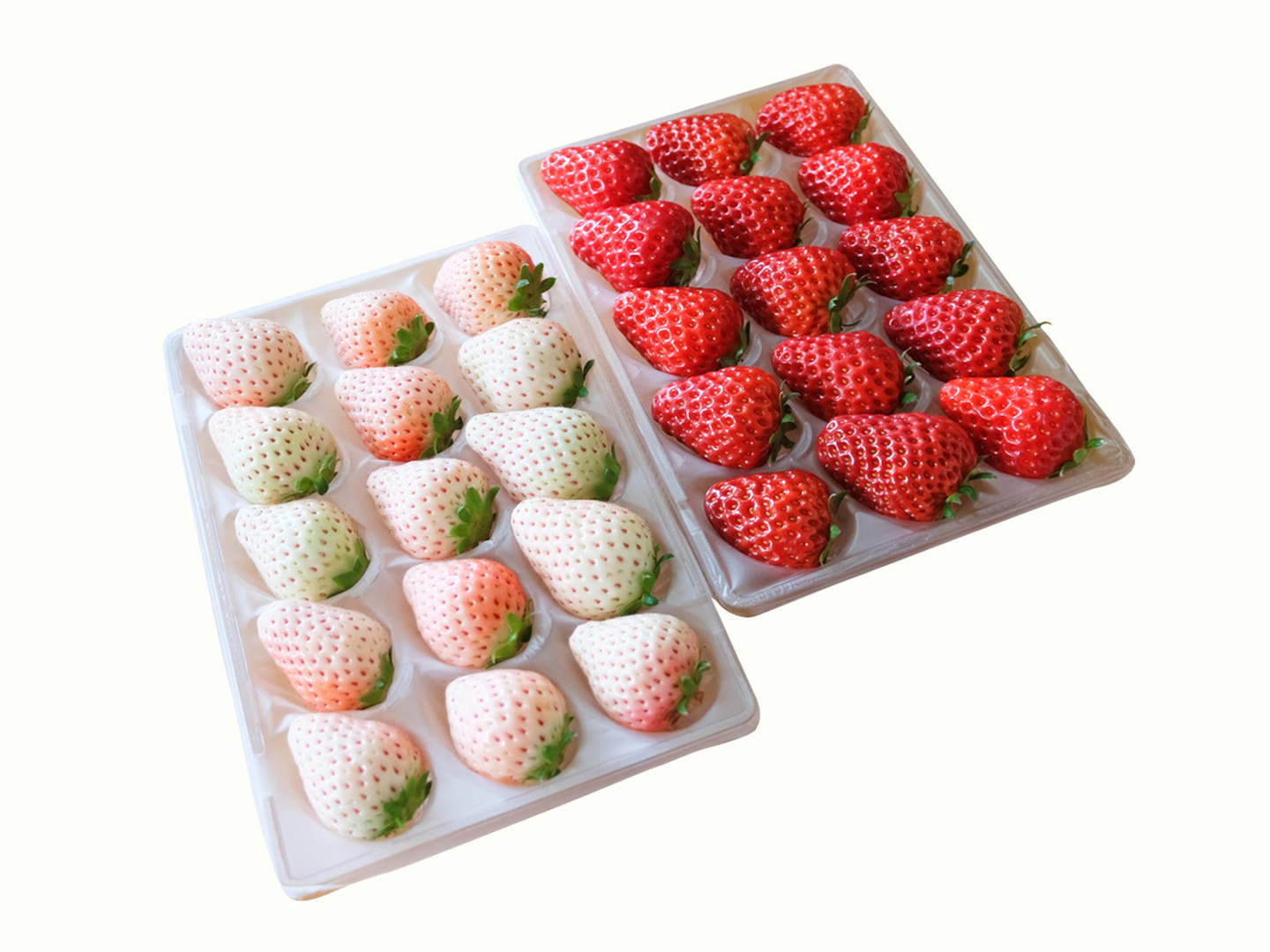 お祝いや大切な方への贈り物にいかがですか?赤と白のコントラストがとても綺麗な紅白いちごセットです。