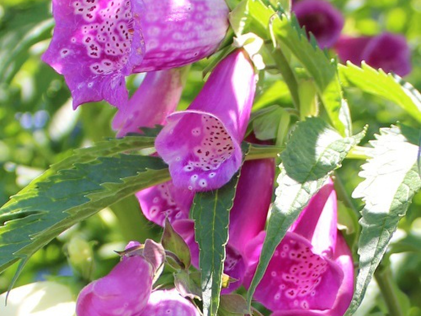 モンストローサパープルは、ジギタリスの中でも珍しい品種です。花穂の先端に筒状の花とは異なる椀状の花を咲かせます。