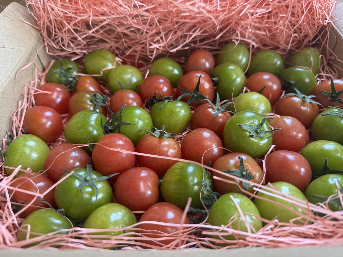 以下、とまと農家としての私見となりますが、プチぷよグリーンはプチぷよ(←赤)より皮が薄く、より繊細であるため、要取り扱い注意!高温注意!な農家泣かせな品種ではありますが... 口いっぱいに広がる爽やかなこの甘さを、ぜひ体験していただきたい!ほんと、癖になりそうな美味さ!と言えるかも... (笑) なお、プチぷよ(←赤)より日持ちがしませんので、くれぐれもご注意ください。