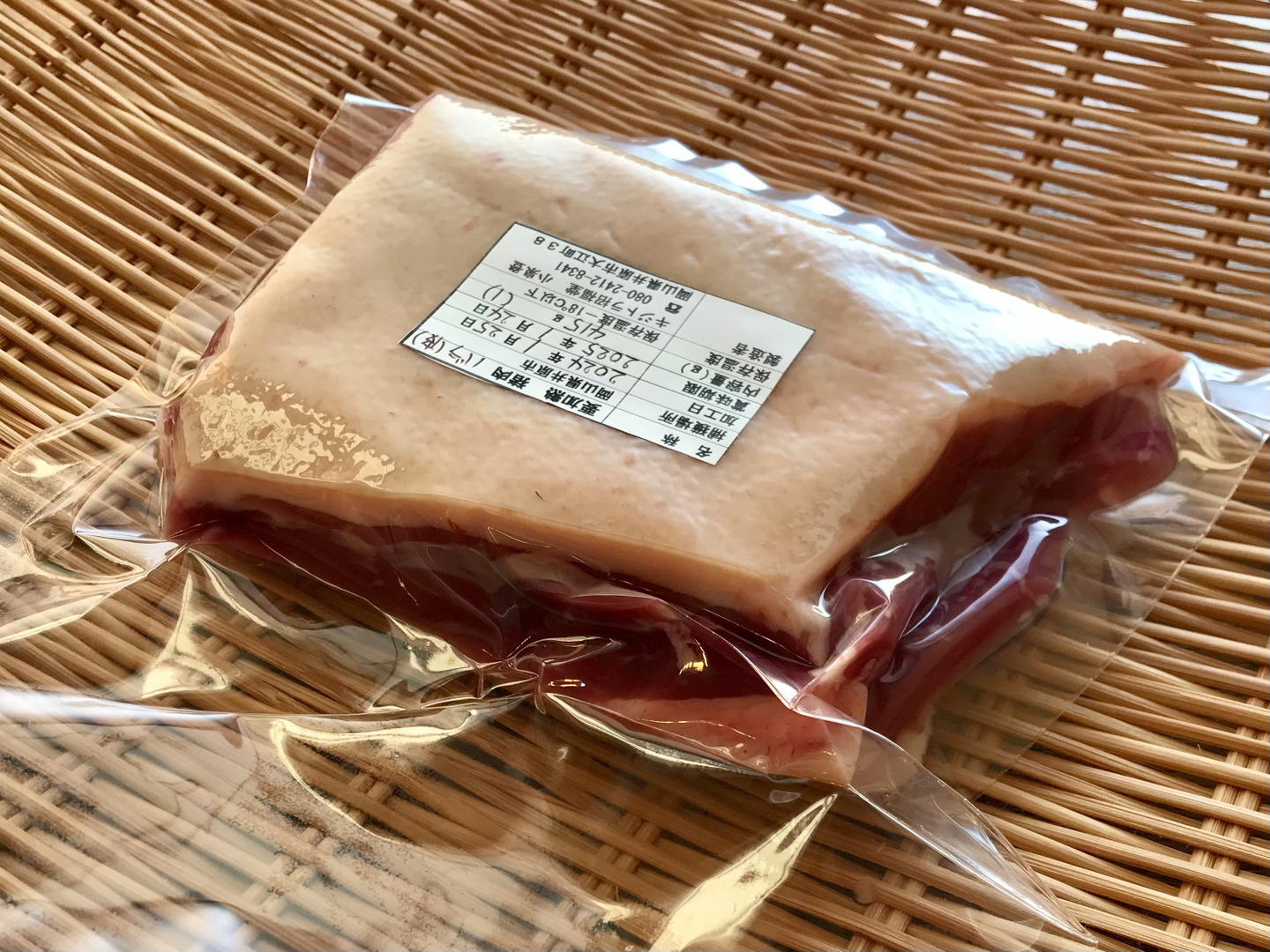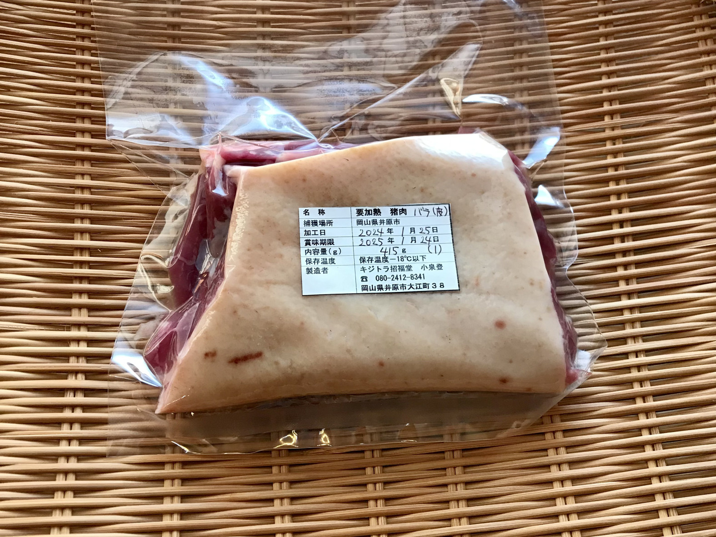限定品✨ジビエ【《皮付》猪肉バラ 415g ブロック】240125-1 クセになる食感❣️焼いてパリッじゅわっ!ほとばしる脂♪