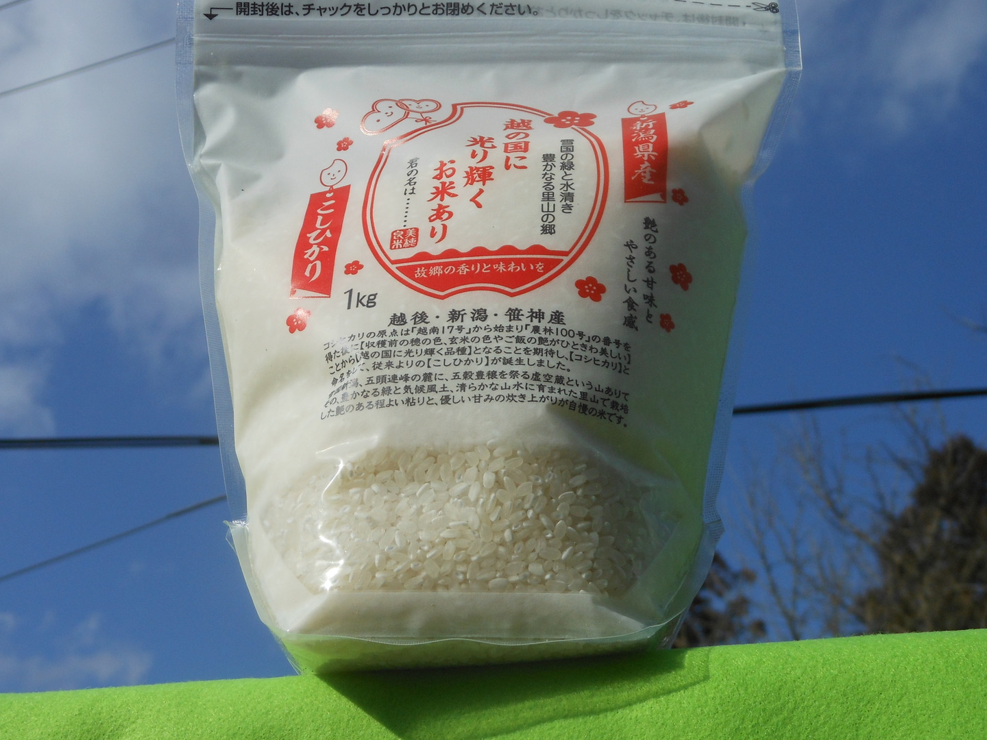 新潟産米の品種で【こしひかり】1㎏×4袋と【恋の予感】300g×1袋のどちらも品種登録のお米です、合計5袋で4.3㎏のお米のセットです