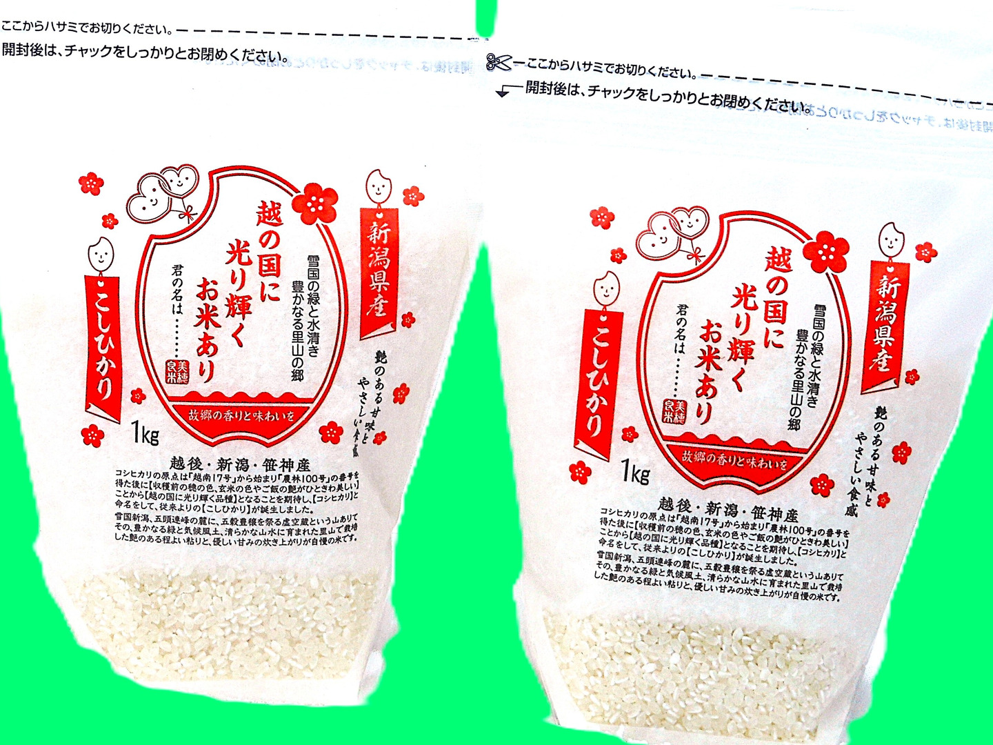新潟県生まれのお米【新之助】1㎏入れ1袋と【恋の予感】と【縁結び】と【ひとめぼれ】は各300g入れ×各2袋の合計7袋で合計2.8㎏のお米で、12月20日~1月10日迄の注文限定価格です