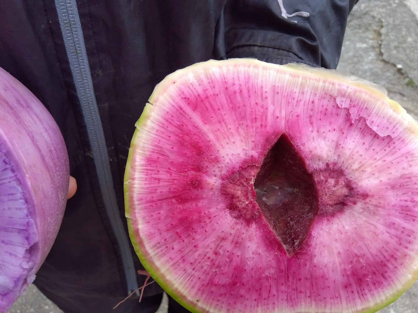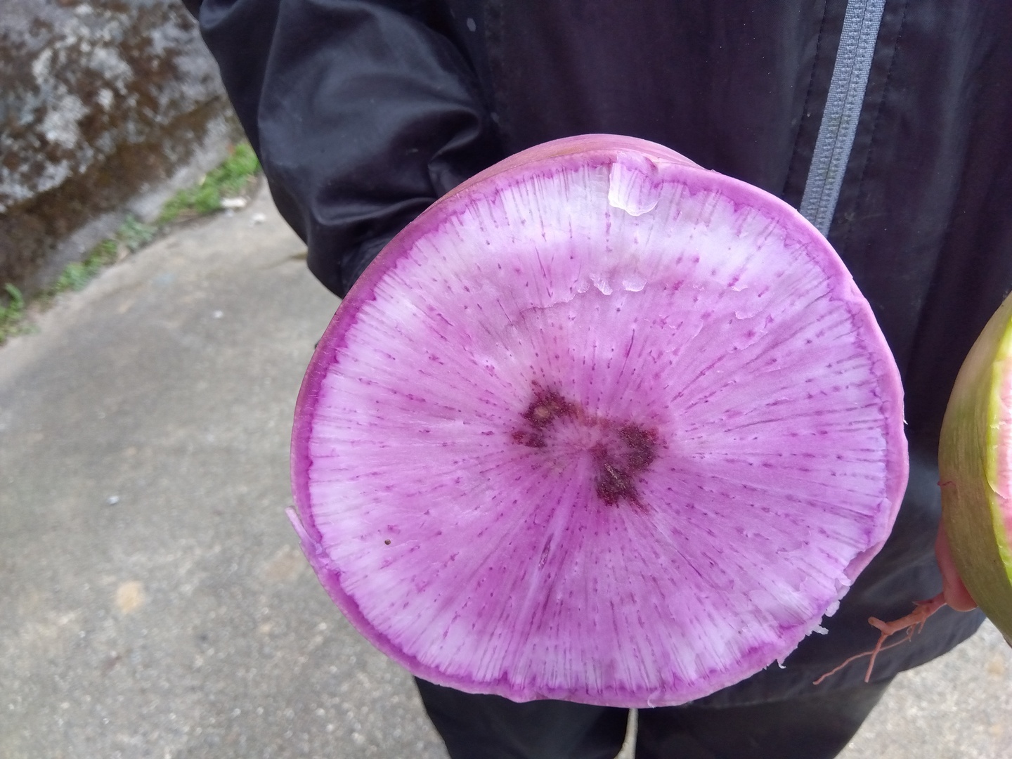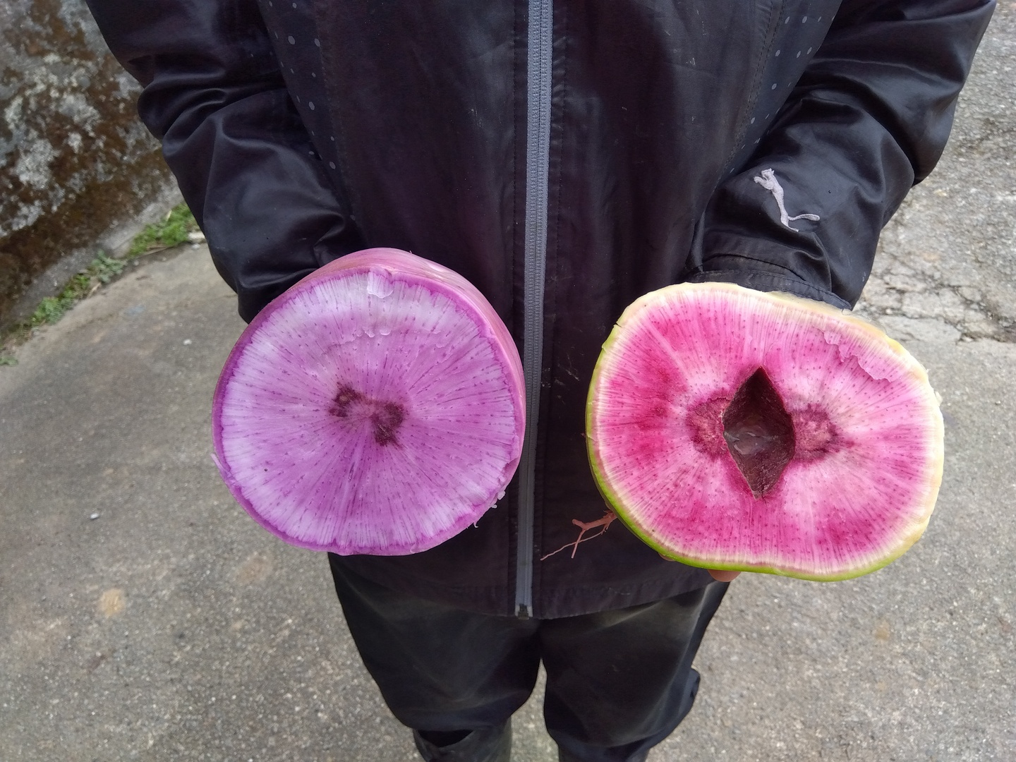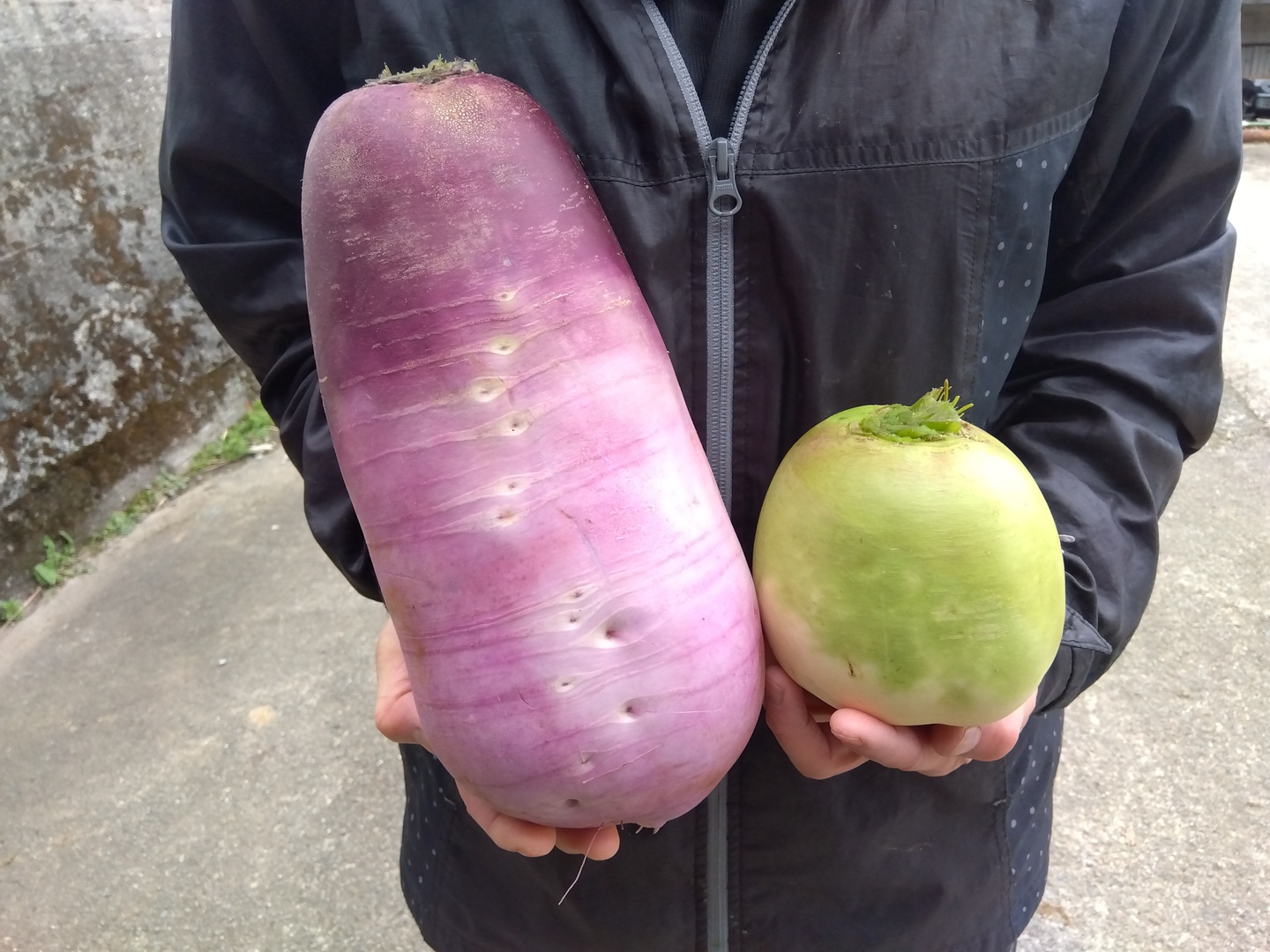 - 大きさは藤紫大根2kg強、紅芯大根は約800gです