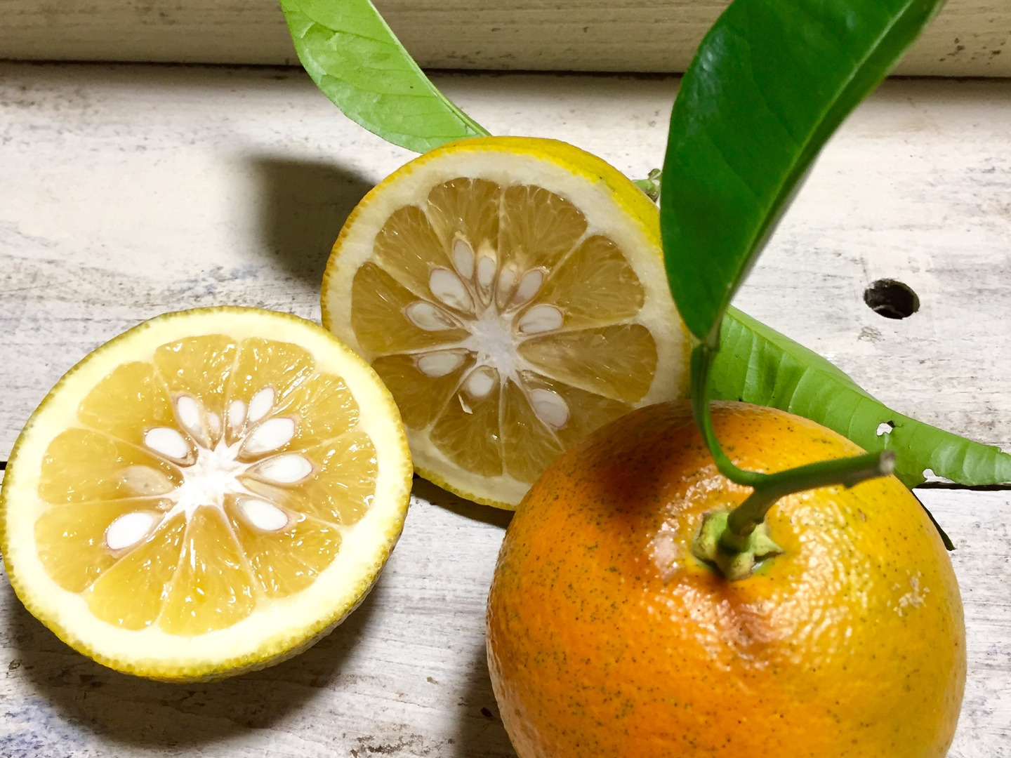 橙は実が落ちないことから、落ちない縁起のいい果実として知られています。お正月飾りに添えられている柑橘が橙です。代々繋がるという語源の橙は縁起のいい木として庭先に植えられる事も多かったようですが近年は減ってるようです。橙はレモンと同じように絞って寿司飯やドレッシングなどにどうぞ。香りよく美味しいです。寿司飯は本当におすすめです。