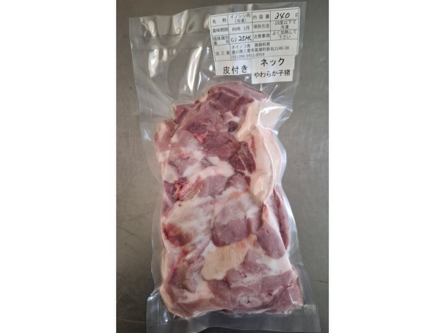 ジビエ やわらか仔イノシシ 【皮付き】 ネック ブツ切り 340g