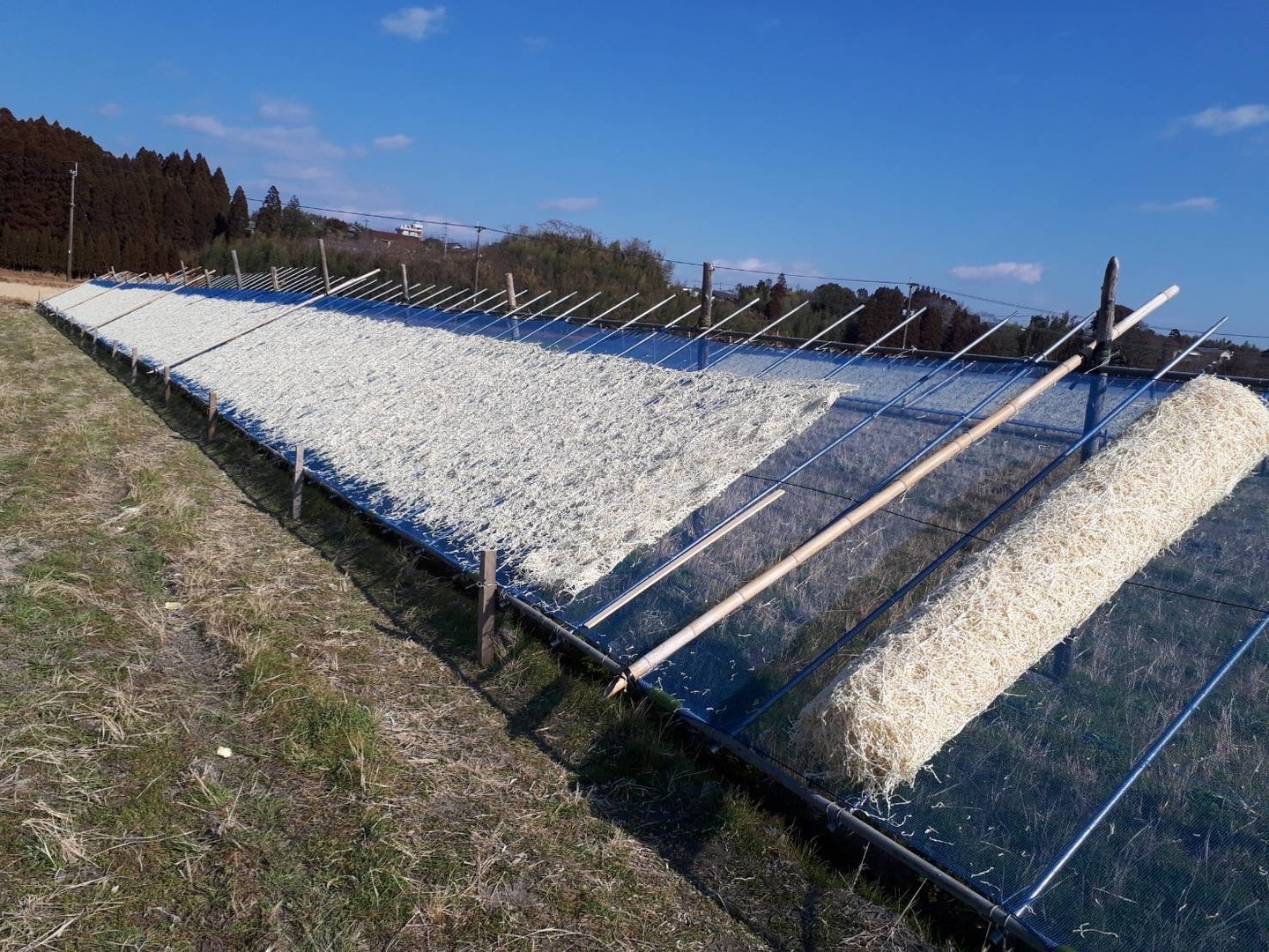 特徴①自然天日干しであり、広大な畑の中に"千切り棚"という棚を作って干します。