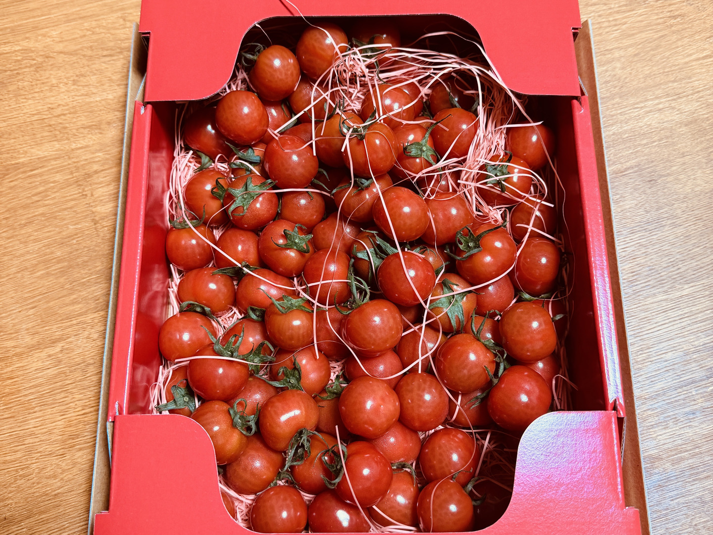 超薄皮であるがゆえ、一般の流通では傷がつきやすく、スーパー等ではあまり見かけることのないちょっと珍しいミニトマト。さくらんぼのように艶々でピッカピカなプチぷよは、皮が極めて薄く、「赤ちゃんのほっぺのような新食感」って感じで、よく紹介されていますが、じつは、じつは... 糖度は高く(9-11度)、ほど良い酸味とコクも感じられ、トマトの風味が抜群で... ほんと、知る人ぞ知る不思議な(⁈)ミニトマトなんですが...