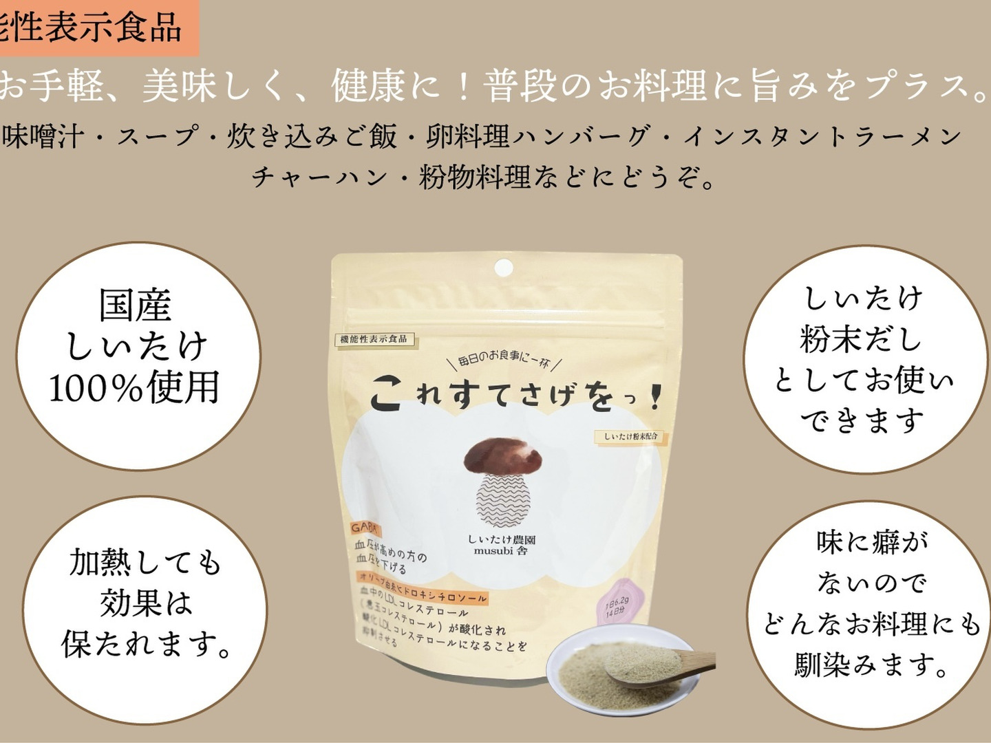 【機能性表示食品】どんな料理も引き立ててくれる椎茸粉末・椎茸パウダー『これすてさげをっ!』(86.8g・1日目安摂取量6.2g、約2週間分)