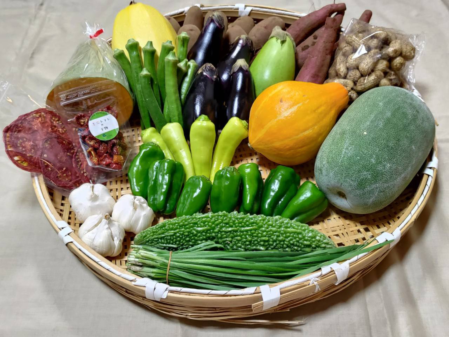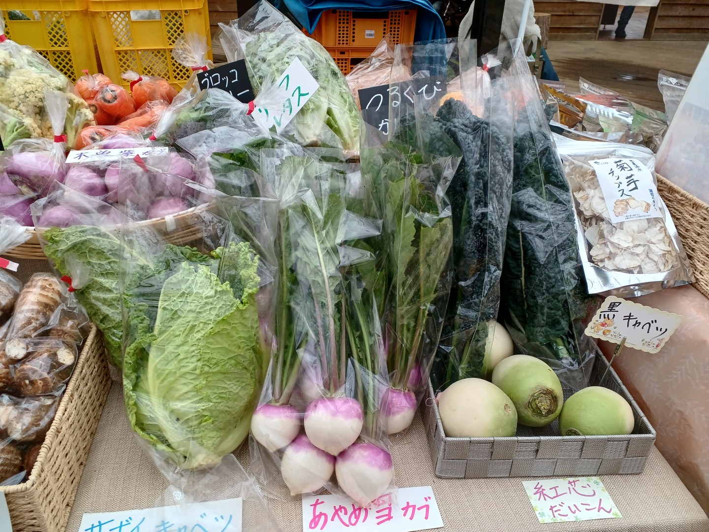 ・大根(上部カット) ・にんじん ・黄にんじん ・ねぎ ・さつまいも(紅あずま、紅はるか、シルクスイート、パープルスイートロード、安納芋) ・ブロッコリー ・カリフラワー ・アレッタ菜花 ・キャベツ ・さといも ・大浦ごぼう ・しょうが ・ケール ・ほうれん草 ・かき菜 ・黒きゃべつ(カーボロネロ) ・のらぼう菜 ・葉にんにく ・小松菜 ・つぼみ菜(子持ち高菜) などです。。