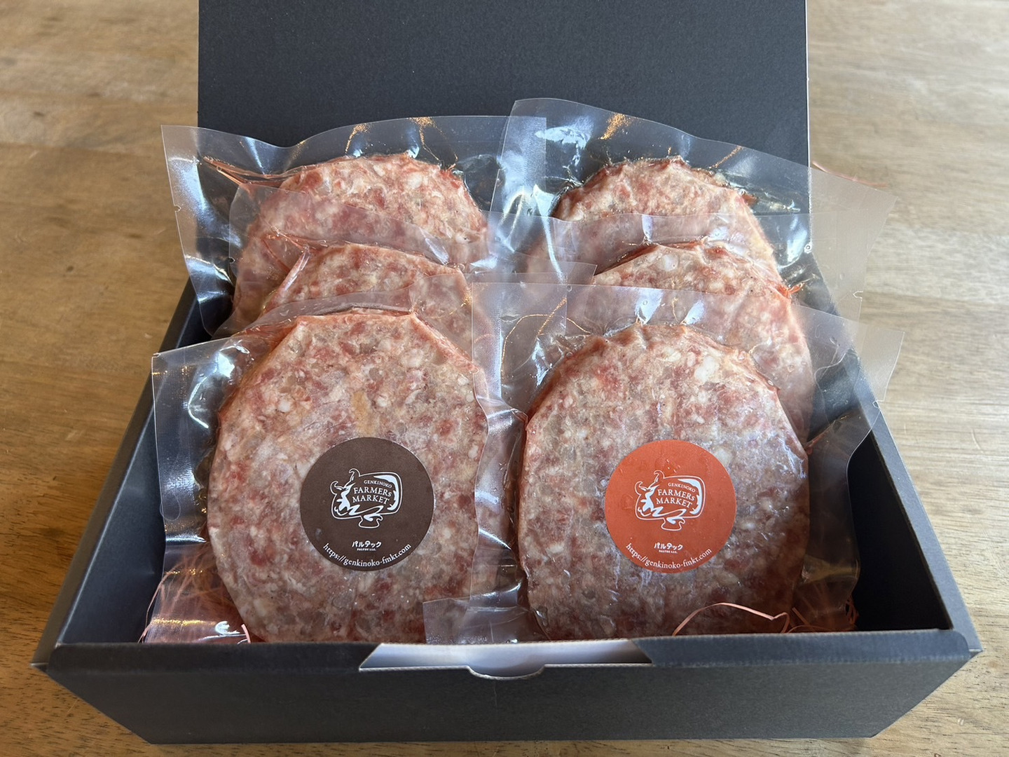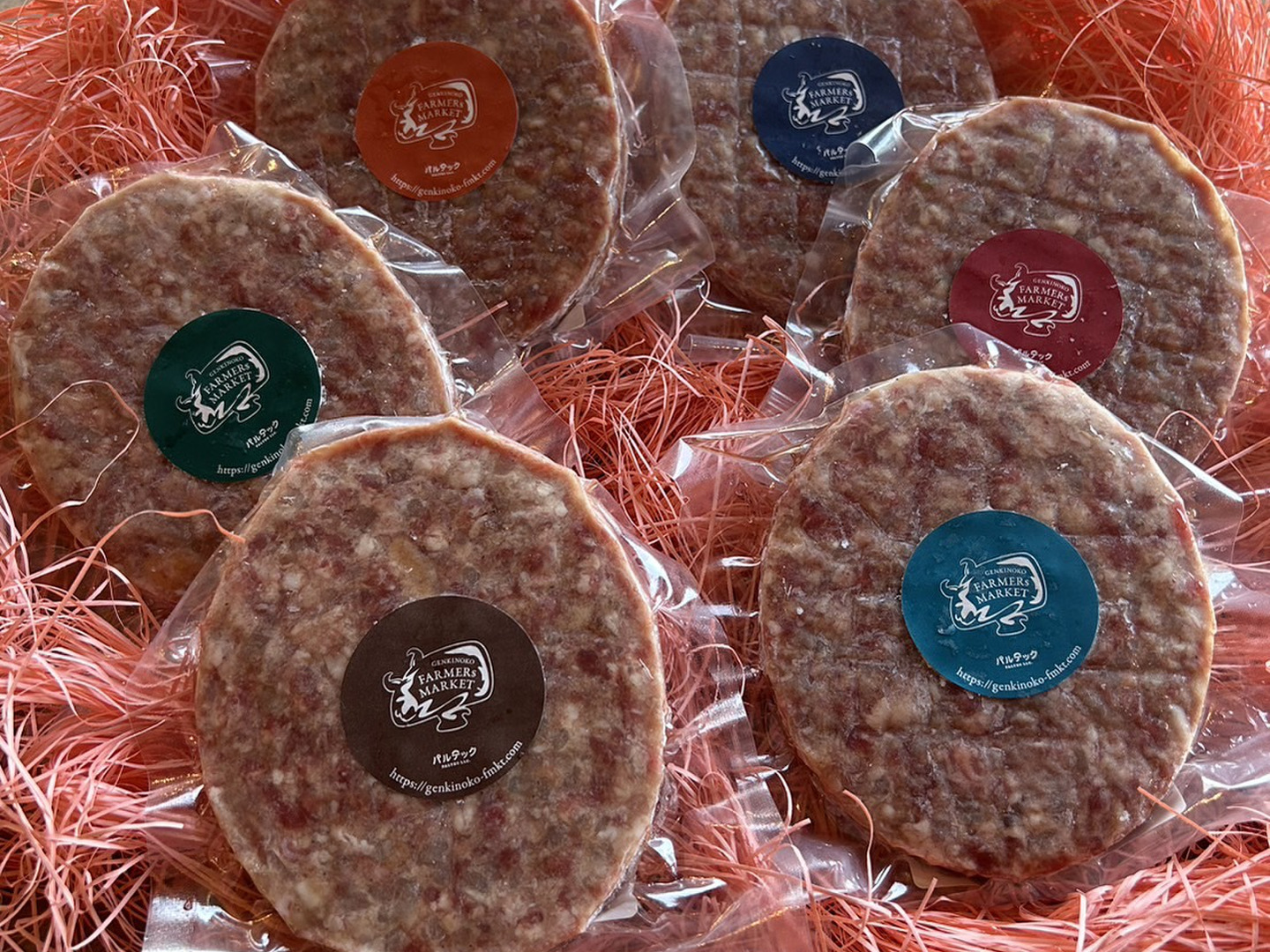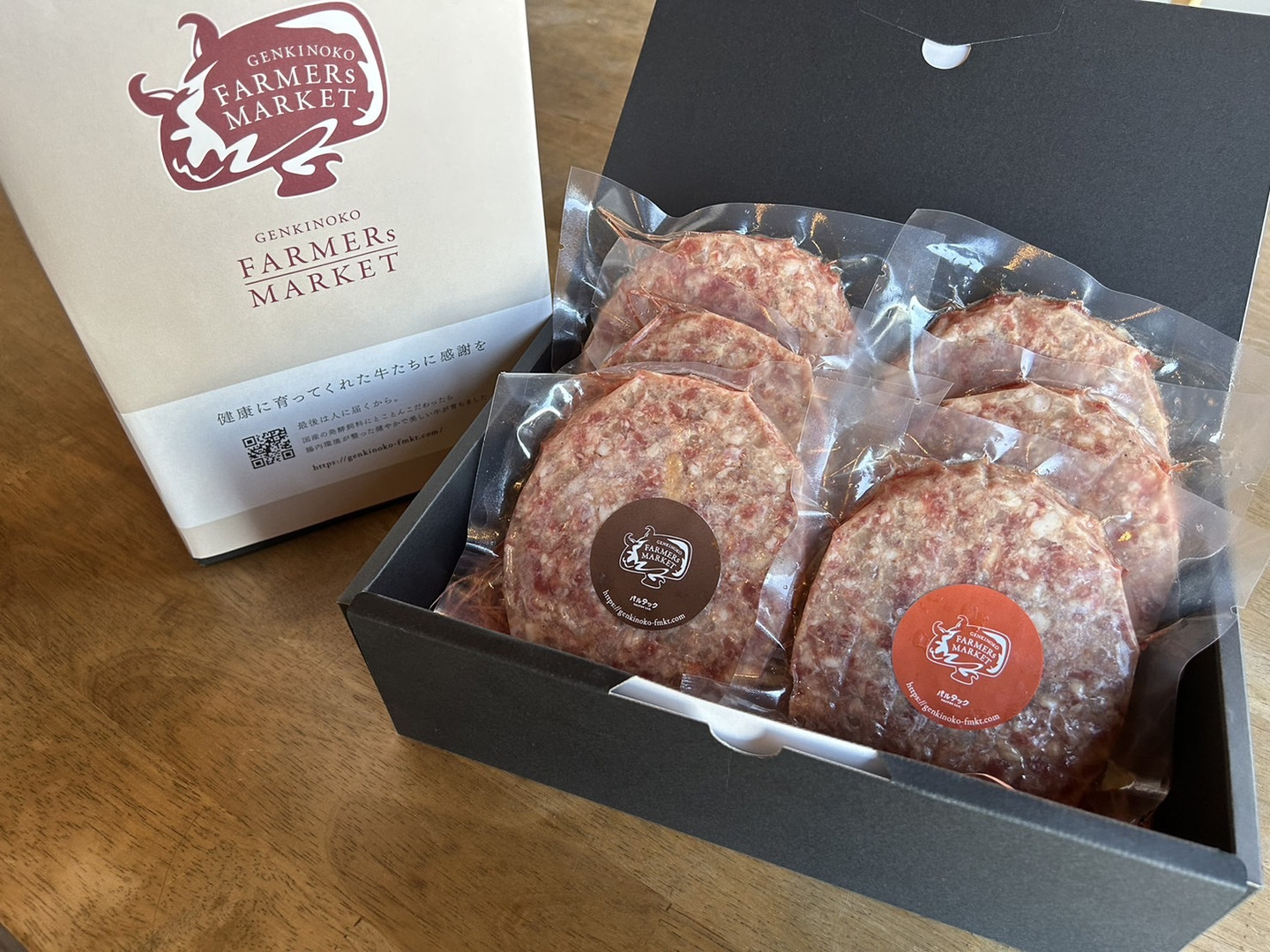 北海道安平町の自社牧場で育てた牛を加工しハンバーグにしております。