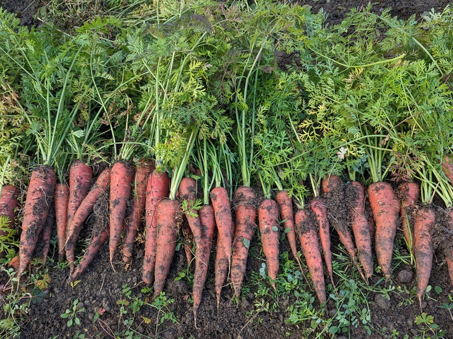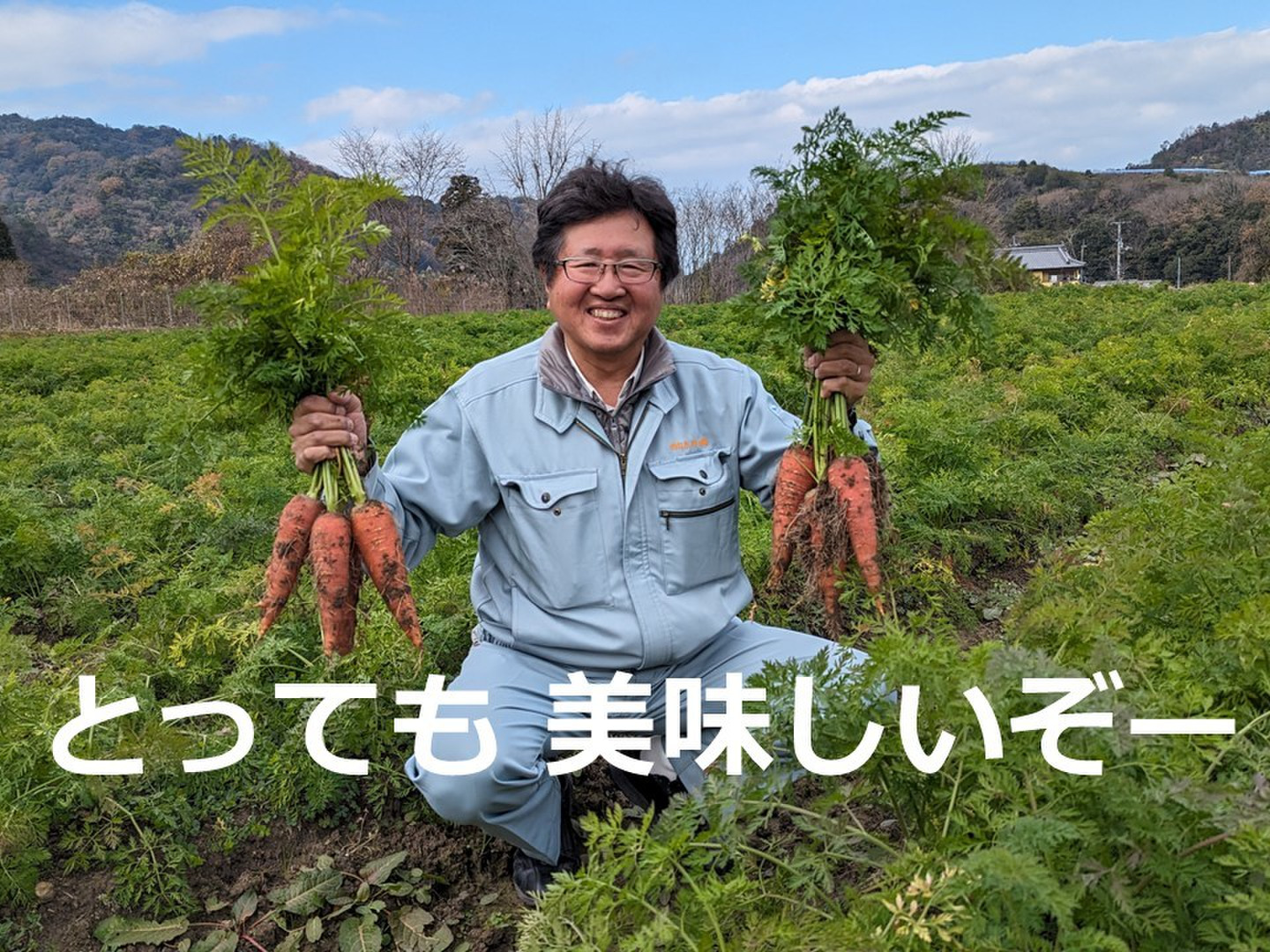 【味の特徴】青味が少なく甘くて食べやすい。生食でも、ジュースにしても美味しい人参。寒さでとても甘くなっています。