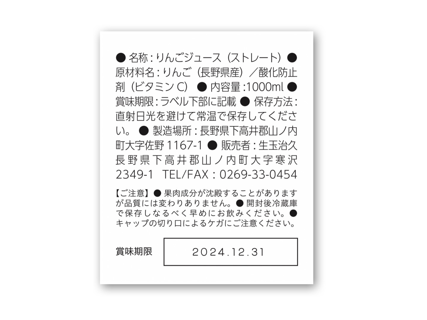 寒沢の美味しい完熟サンふじを絞って作った『サンふじりんごジュース』