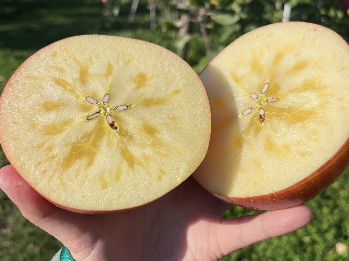 日当たりの良い傾斜地に畑があるので日照時間が長く、とてもおいしい「りんご」が収穫できます。