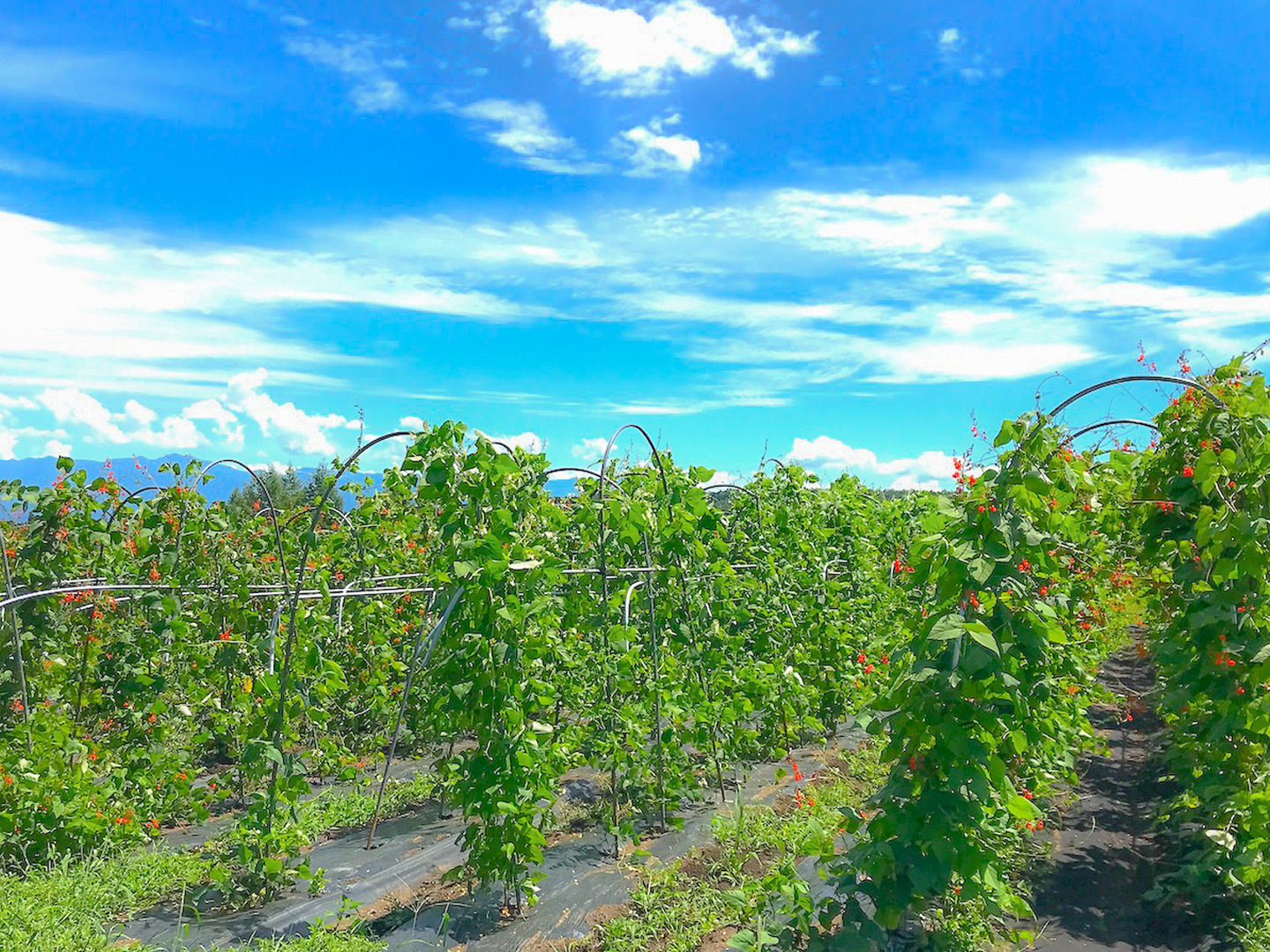 昨春に作付けした花豆が、太陽の恵みと澄んだ空気、清らかな水、大自然の恩恵をたっぷりと受けてすくすくと成長しました。