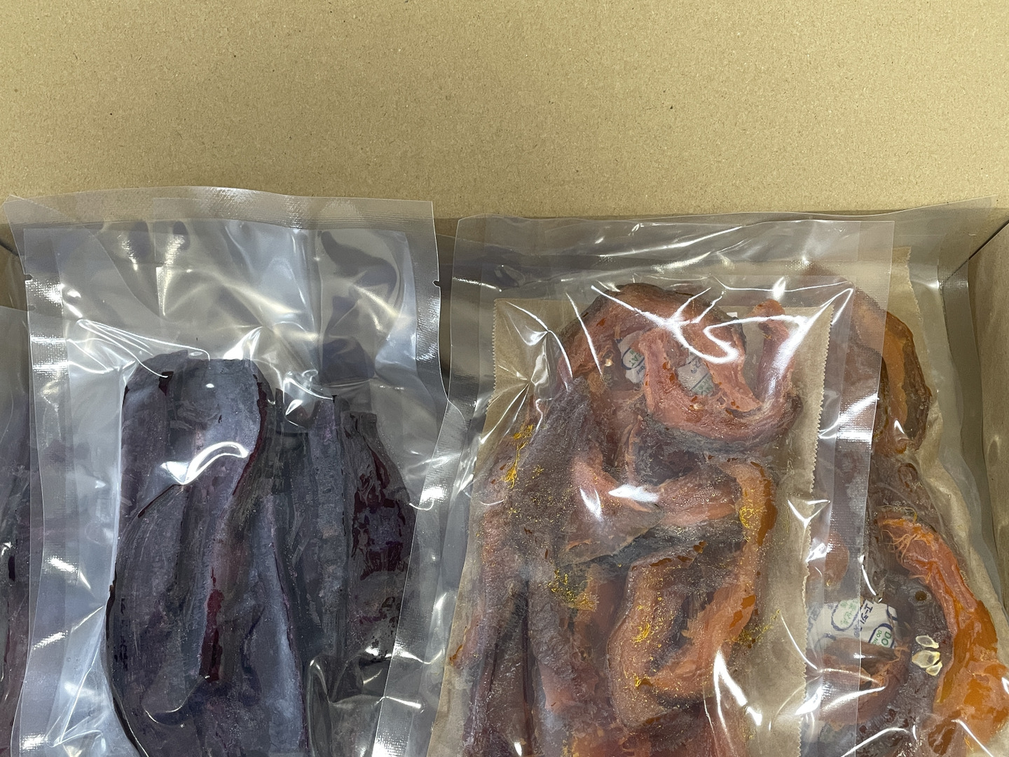- 干し紫芋は優しい素材の甘味、干しかぼちゃはねっとりした甘味