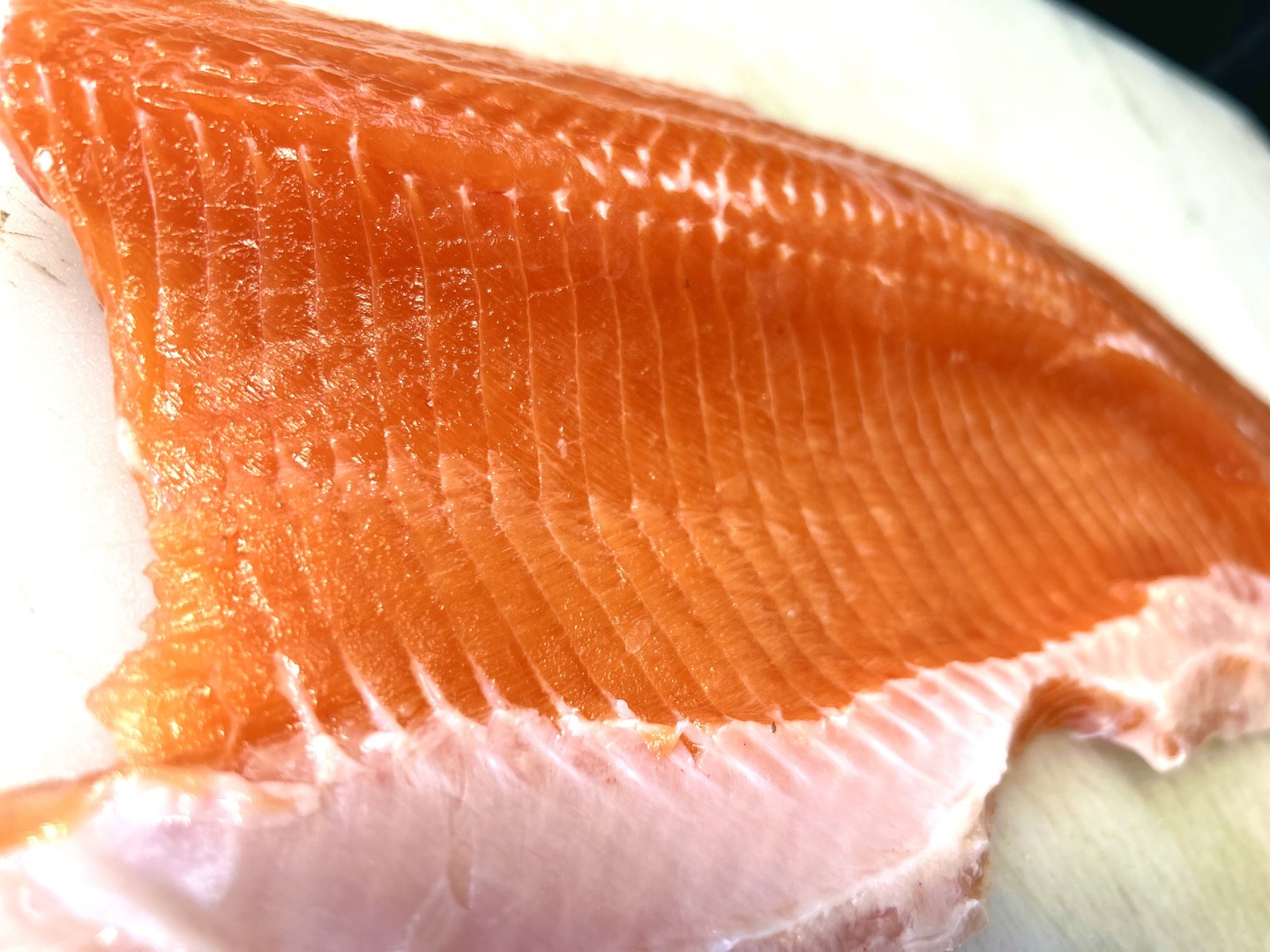 しっかり血抜き神経抜きをし、じっくり低温熟成しました。熟成した信州サーモンはしっとりとして旨味と甘味が強いです。