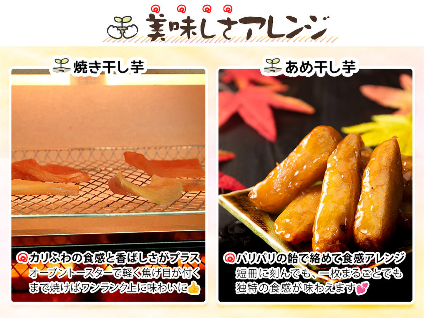 ●芳醇な香りと高い甘みが特徴の【紅はるか】を、3ヶ月以上貯蔵してから干しいもにしているので糖度も高く甘味たっぷりです。