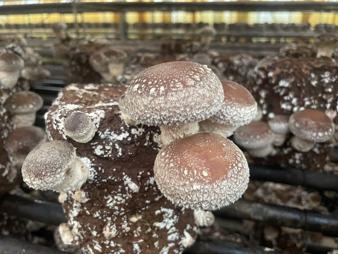 ハウス内で、温度や湿度を徹底管理している椎茸を新鮮な内に乾燥させております。