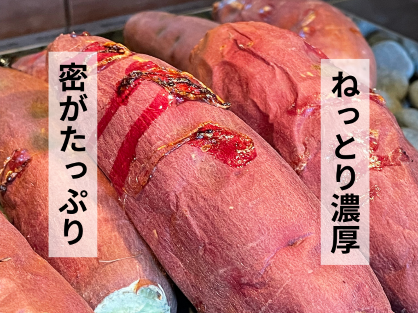 濃厚な甘みが引き出せるのは、生産者が焼いているからです。収穫時期からずっと管理をし、おいしい頃合いをみて、石焼きでじっくり加熱しているので最大限の甘みが引き出せます。