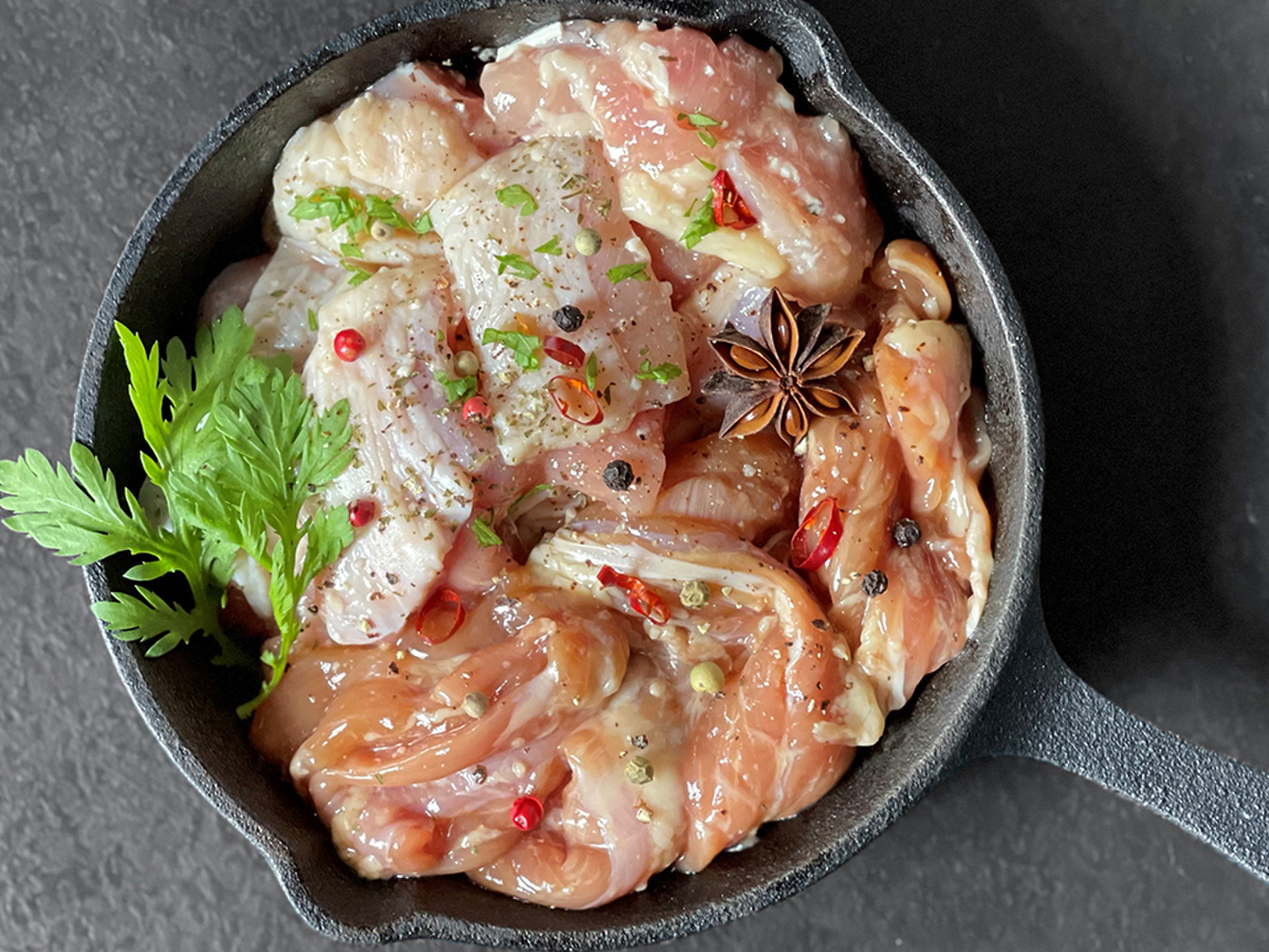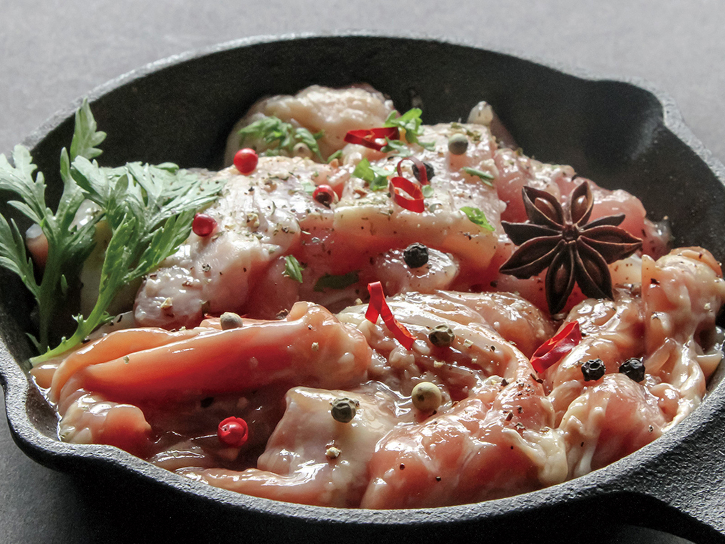 2016年「国際優秀味覚コンテスト」で優秀味覚賞一つ星を日本で唯一受賞、2017年第13回「地鶏・銘柄鶏好感度コンテスト」で優良賞を受賞した銘柄鶏「うまかハーブ鳥」を使った新ブランド「The CHICKEN HERB」を使用した下味冷凍商品です。