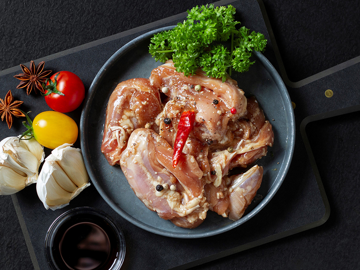 2016年「国際優秀味覚コンテスト」で優秀味覚賞一つ星を日本で唯一受賞、2017年第13回「地鶏・銘柄鶏好感度コンテスト」で優良賞を受賞した銘柄鶏「うまかハーブ鳥」を使った新ブランド「The CHICKEN HERB」を使用した下味冷凍商品です。