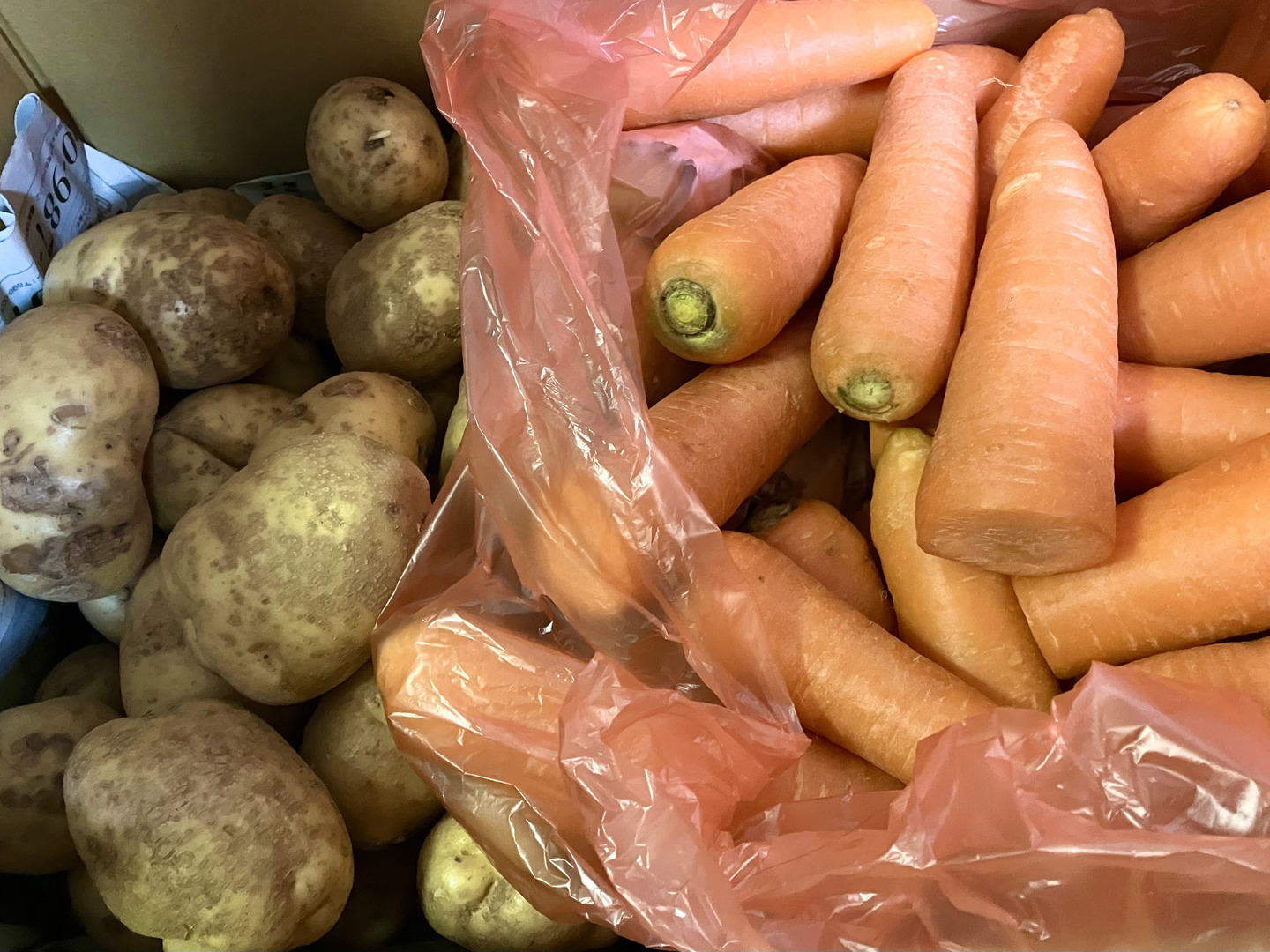 じゃがいもは段ボールの穴をふさいで真っ暗に。にんじんは冷蔵でOK。